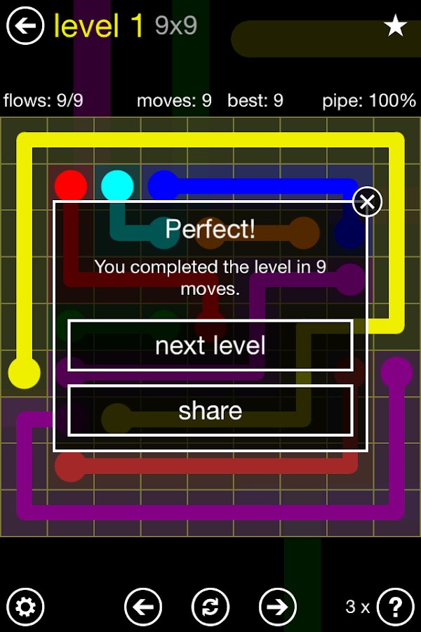 Flow – addictive puzzle game for Android where you connect matching colors with pipe. In this game your main task will be to combine colors with pipes to create a flow of water. Fill in all the playing field pipes and watch that they do not overlap and do not overlap each other. Free play through hundreds of different levels, the complexity of which will gradually increase and compete in the free mode, or with time. Connect your logic and pass the levels as quickly as possible.
