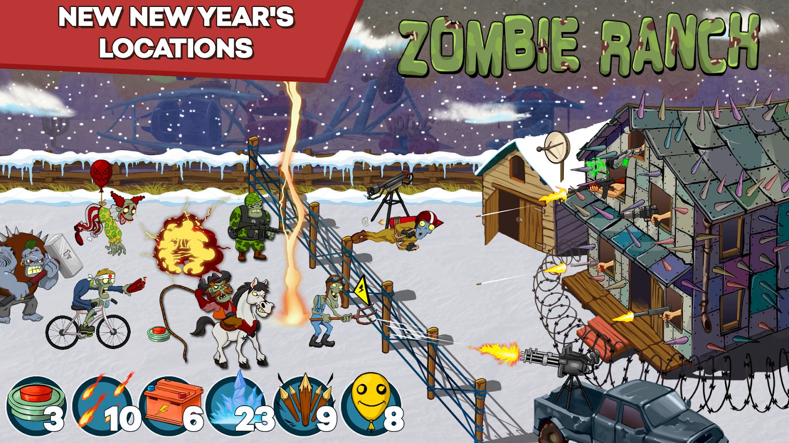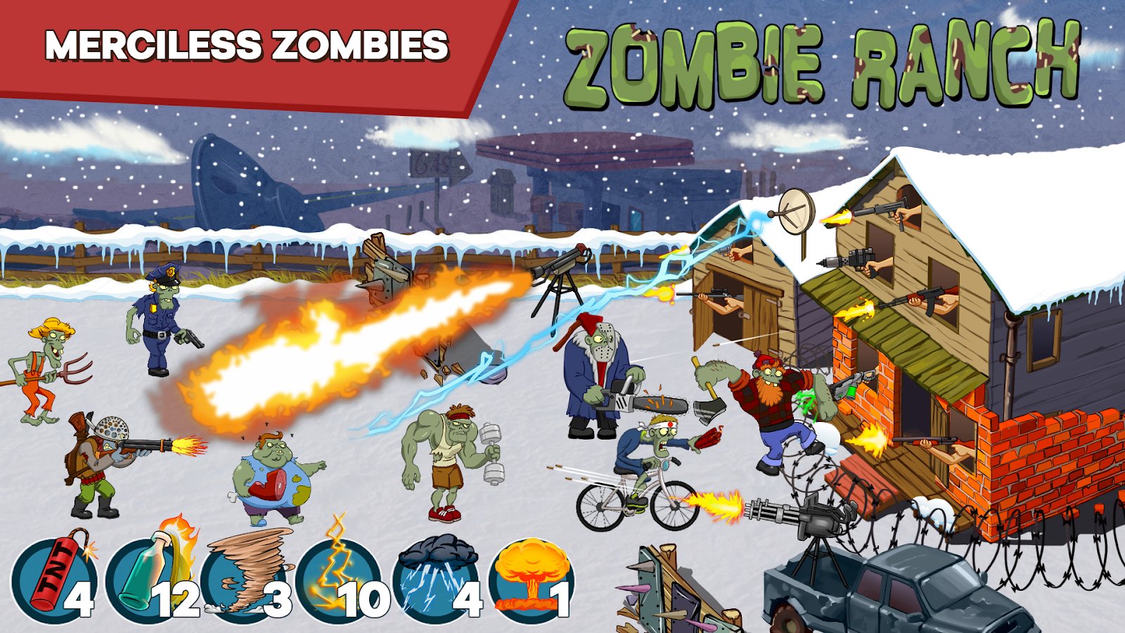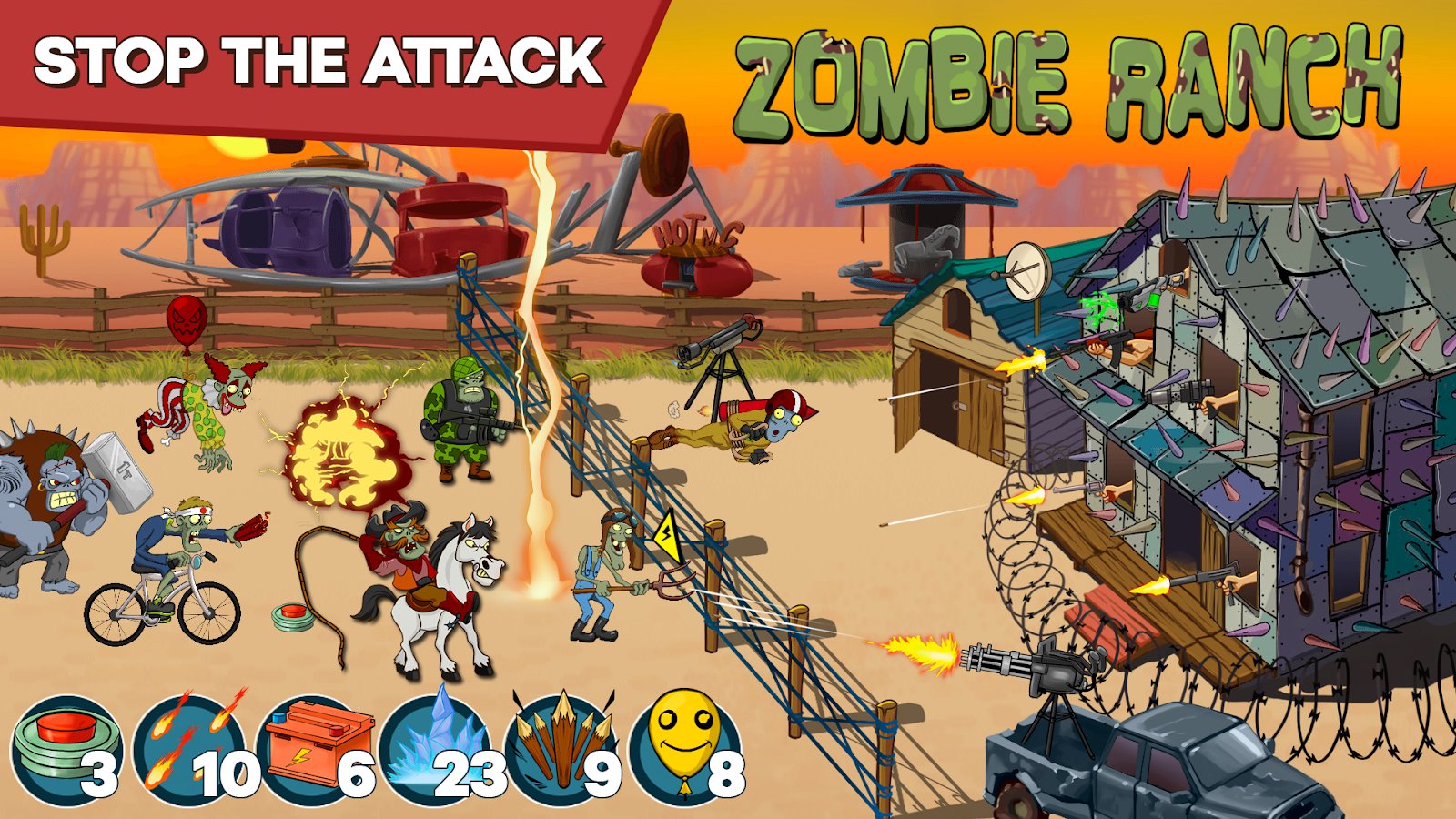 Zombie Ranch - Battle with the zombie – come the zombie Apocalypse, and you do not what remains but to take up arms and defend their ranch. Zombies from all sides will attack your ranch and your task is to place different weapons on different sides so not to allow the enemies to get inside. Zombies bloodthirsty and ruthless and they are not so easy to destroy. Fight the enemies and collect points which will allow you to access new weapons. Go through more than 150 levels of the game and defeat the army of zombies. Spin the roulette wheel and take your new shotguns and pistols.