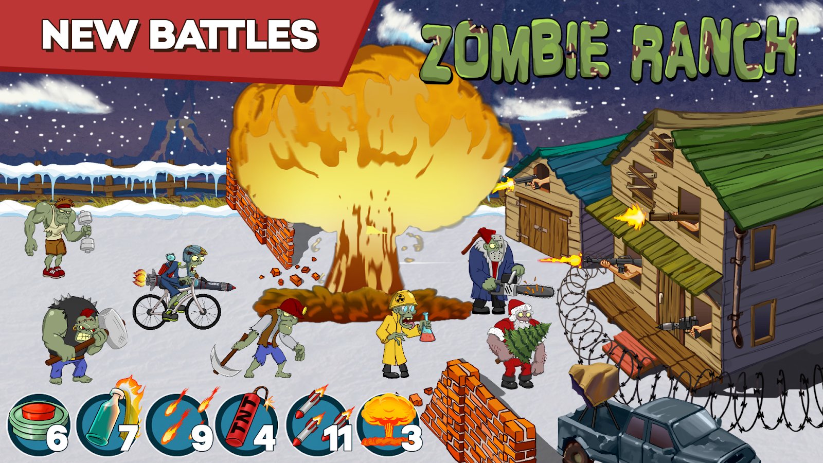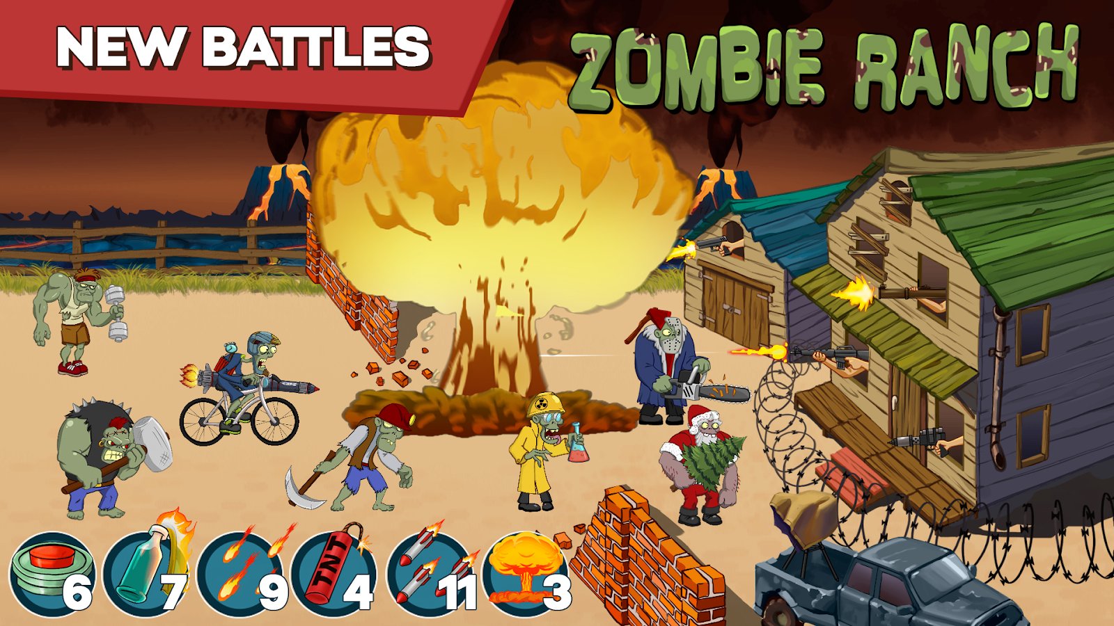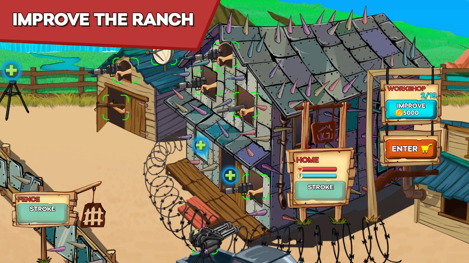 Zombie Ranch - Battle with the zombie – come the zombie Apocalypse, and you do not what remains but to take up arms and defend their ranch. Zombies from all sides will attack your ranch and your task is to place different weapons on different sides so not to allow the enemies to get inside. Zombies bloodthirsty and ruthless and they are not so easy to destroy. Fight the enemies and collect points which will allow you to access new weapons. Go through more than 150 levels of the game and defeat the army of zombies. Spin the roulette wheel and take your new shotguns and pistols.