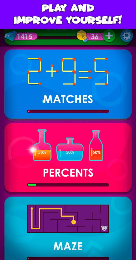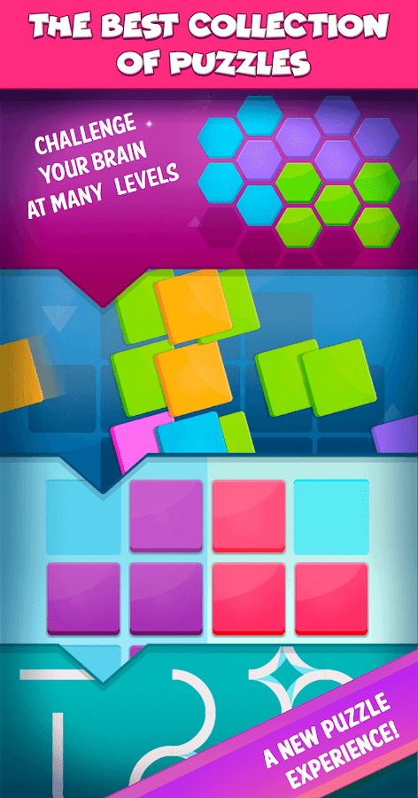 Smart Puzzles - the best collection of puzzles is a fascinating collection of puzzles for Android. If you love to solve puzzles, solve math problems and perform logical tasks, then this game is for you. Train your brain playing this game every day and compete with players from around the world. In this game you will find a large number of the most popular and fascinating puzzles. More than 5000 levels where you will have to collect blocks, shapes and forms. The game perfectly suits both for kids and for adults.