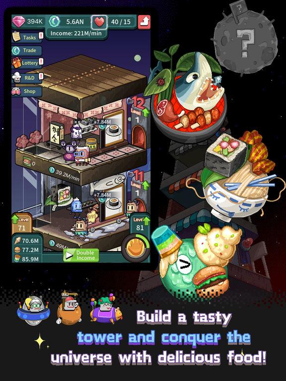 Foodie Tower: Idle Shop Tycoon – an entertaining game where you will create your own tasty tower. In the game you will create your products and sell them in shops thus gaining profit and success. Your main task will be to create delicious food and to conquer the entire world. Hire a team of managers who will help you in this difficult matter. Each product type will require a system of research and development that will challenge your culinary skills. Expand your taste tower and try all the new tasty meals.