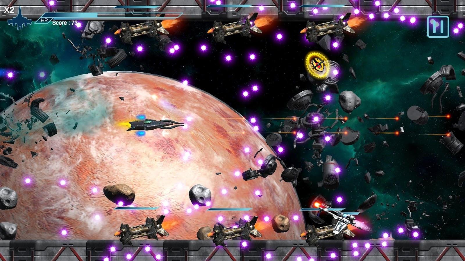 3D Space Shooter : Infinity Jerigen – horizontal space shooter for Android where you take part in an epic battle. In this game you will discover a 3D universe which you will explore in your spaceship and fight a variety of enemies. Control your spaceship with the joystick or switch to touch control. Touch the screen of your phone as quickly as possible and take shots at enemies and you can switch to automatic fire mode. Play this game and enjoy the stunning 3D graphics.
