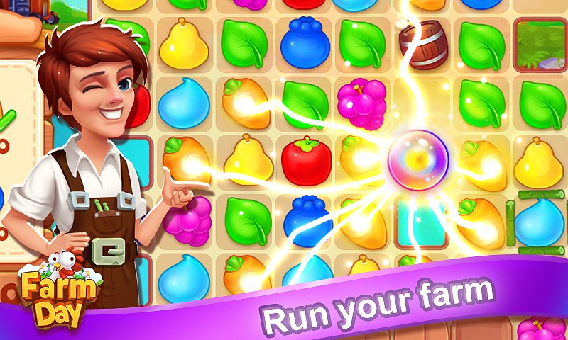 Farm Day - 2019 Match Free Games – game of the genre three in a row on Android where you will help Tina to create your unique farm. The main character builds his farm and for that she needed resources and now your task is to match three or more fruits in a row and get rewards. Free the magic fruit and have the resources you need. Solve logic puzzles and create your combination of objects. Use in the game various enemies and beat levels faster. Build the farm of your dreams.