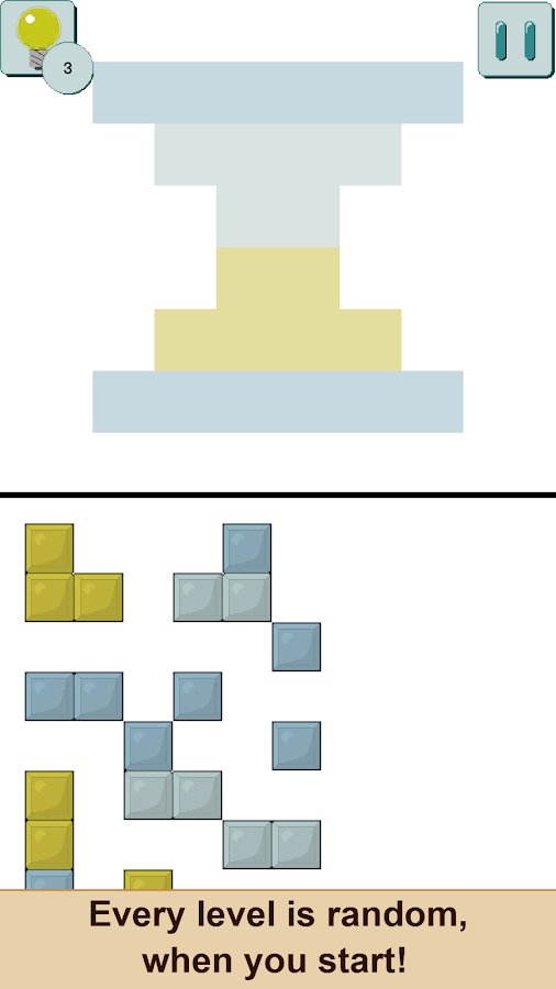 Parts to Shape Block puzzle – an addictive puzzle game for Android where you will place the pieces on the playing field. In this game you will be a figure that you must fill in the blocks of different shapes according to the colors. Keep blocks and thoroughly think over your every move. All the puzzles in this game are randomly generated giving you the opportunity to take them again. Collect enough stars and unlock new levels. Use the tips in difficult situations and play with friends.