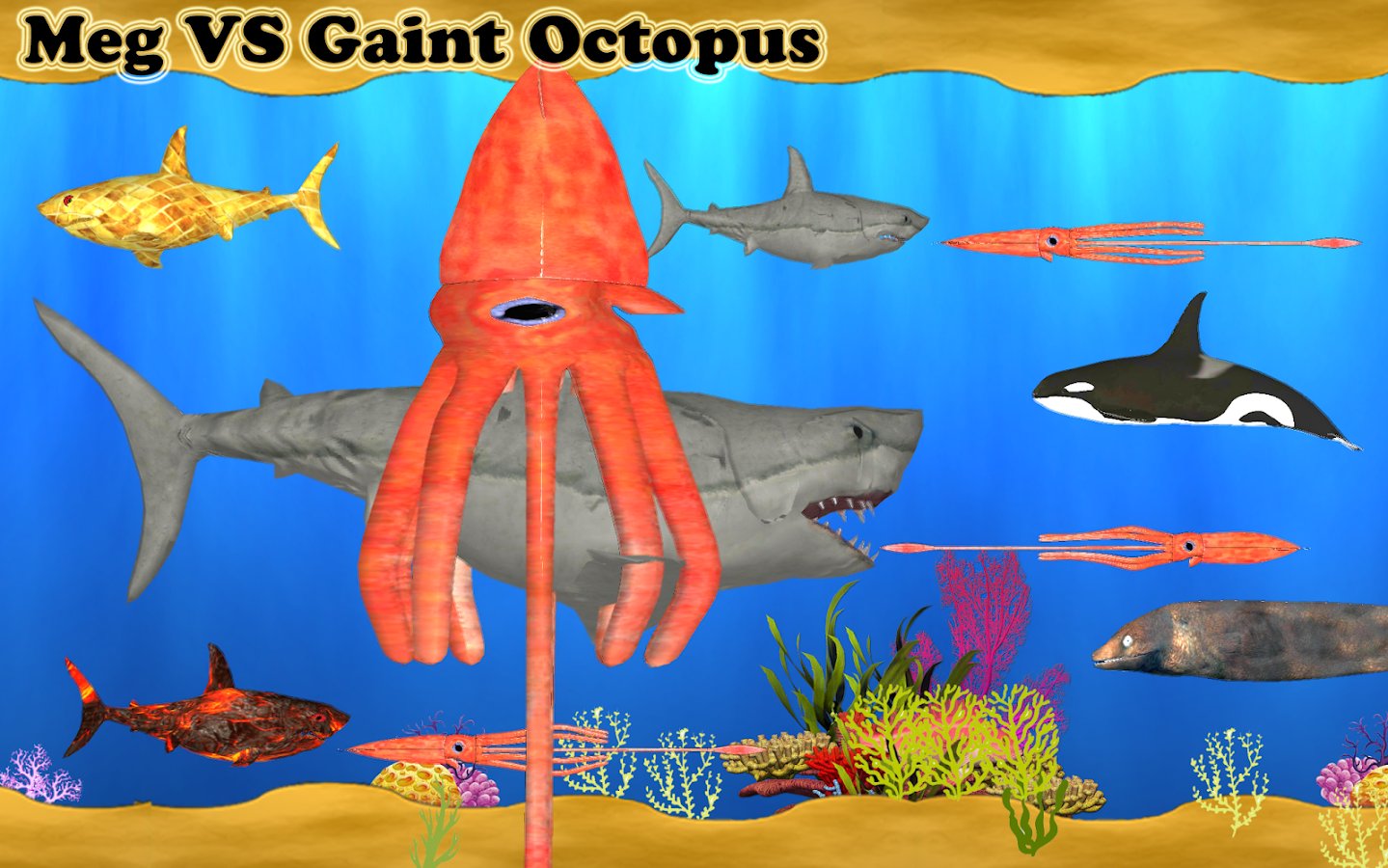 Mega Sharks Pro : Shark Games – an entertaining game where you control a shark. In the beginning of the game you will control a little shark that swims in the ocean and eats everything in its path hoping to become Megalodon shark. Eat more and more different mammals living in the ocean which have a small size. After a hearty lunch, your shark will increase in size which will allow it there are fish, dolphins, whales, octopuses and whales. Eats everything in its path and more and more increasing in size while achieving excellent results.