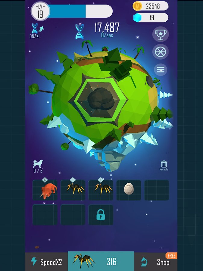 Animal Planet: Evolution is a fun arcade game with elements of strategy and clicker where you have to take control of the development of the Earth from ancient times through the steps to trace the evolution of such creatures as the mammoth, dinosaur and other animals. In addition, you need to develop other elements of the planet, it is necessary to follow a harmonious combination that will allow you to lead the evolution to the top. Nice graphics and simple gameplay with many features will allow you to fully realize your potential.