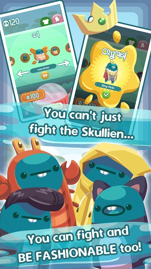 Splat d Skull – take control of the hero and help him protect his planet from alien skulls. In this game you will travel through picturesque locations and shoot at enemies with a slingshot jelly balls. Show business all his dexterity and excellent response and fight the enemies. Touch the screen of your phone or tablet with your finger and choose an appropriate flight path. Try to shoot straight at the enemy and not to miss. Discover new levels, which will present you with new enemies and a lot of costumes for the hero.