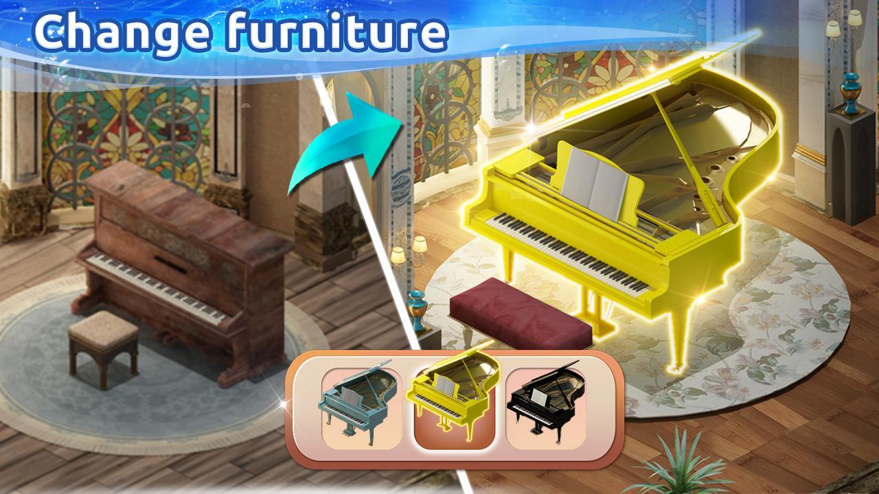 Manor Diary – a fascinating game of the genre three in a row for Android, in which you will equip the mansion. In this game you will help a young girl who got the house in inheritance and now her task will be to update it, both inside and outside. Match different objects and pass difficult levels trying different furniture in hall, living room and bedrooms. Enlist the help of bonuses in difficult situations and get three stars for each level. The difficulty of the game will consist in the fact that at every level you have limited number of moves, so think carefully about every move.