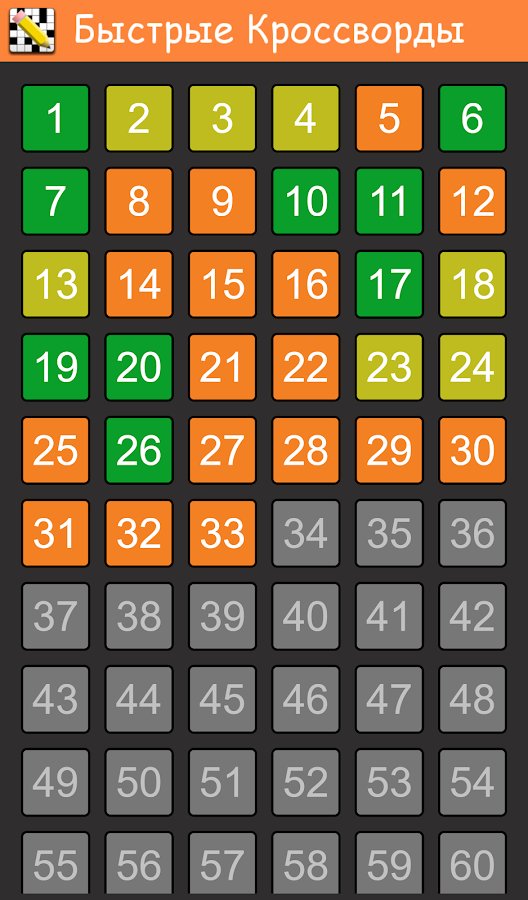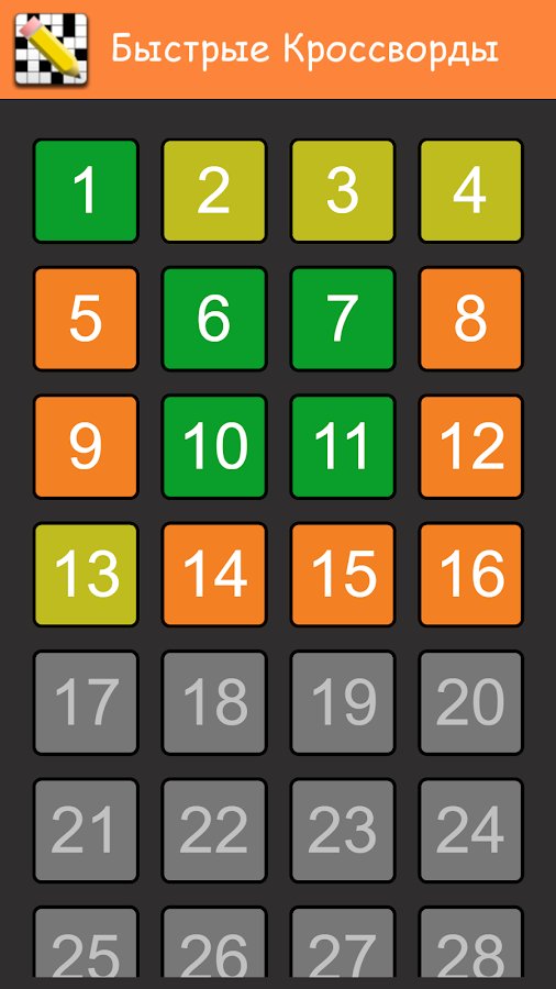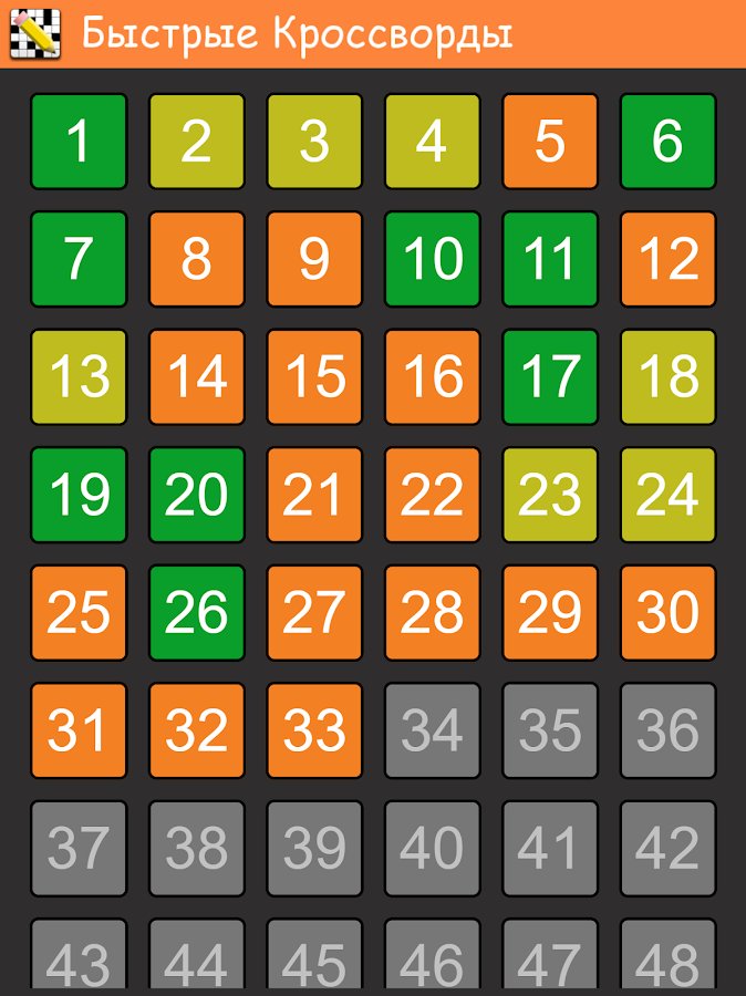 Quick Crossword puzzles in Russian – a great game for fans of crosswords. In this game on your screen appear a crossword puzzle and your task will be to solve it, training their wits and checking knowledge. In this game you can play on the go, and it will not take you much time. The main features of this game is the presence of the Russian language, immediate checking of your answers and the opportunity to use hints. All in the game you will find 6000 unique questions, 712 crosswords and a huge list of words.