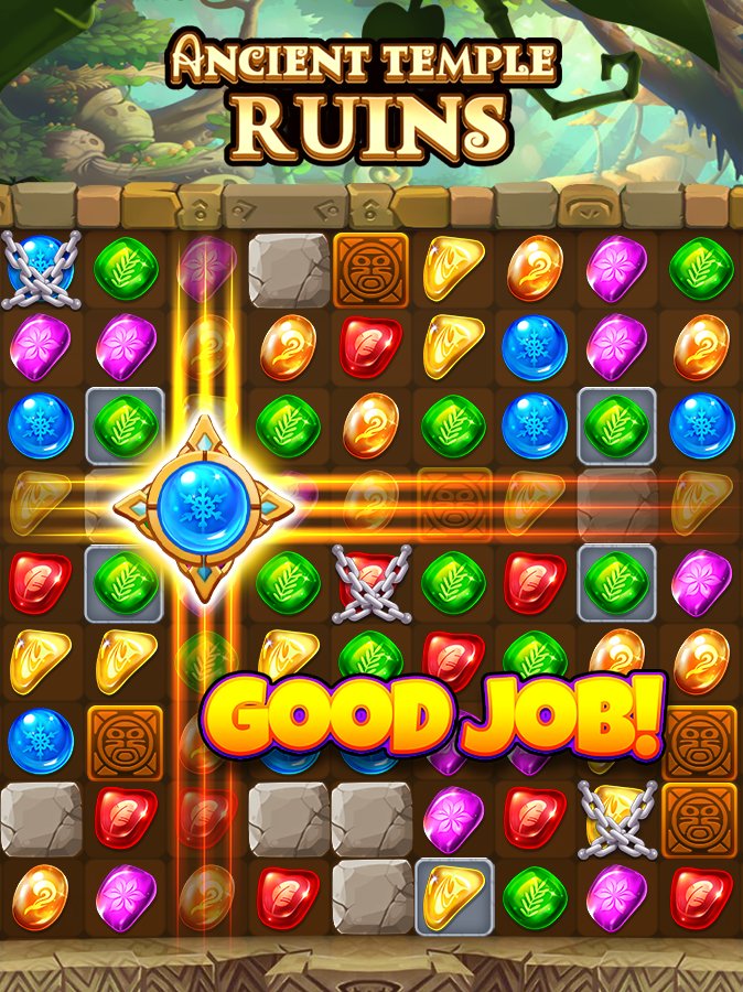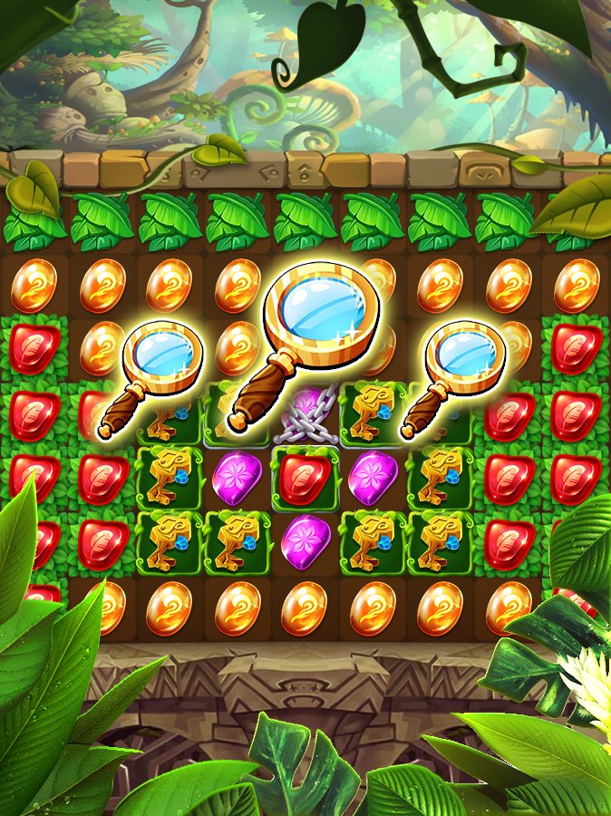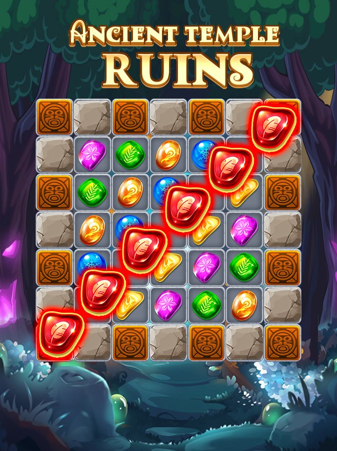 Jungle Diamond Crush – a game of the genre three in a row for Android, in which you will explore an ancient temple lost in the jungle. In this game your main task is to match three or more jewels and collect treasure. Bypass traps and obstacles in their path and made their way further into the depths of an abandoned temple. Connect your logic and intelligence and solve complex problems, uncover the power of gems and make combos. Get valuable prizes and unlock exciting new levels in this game are more than 1000.