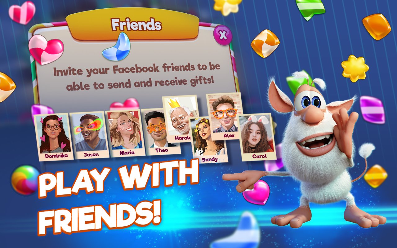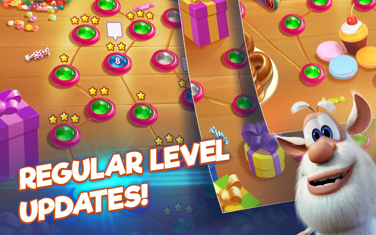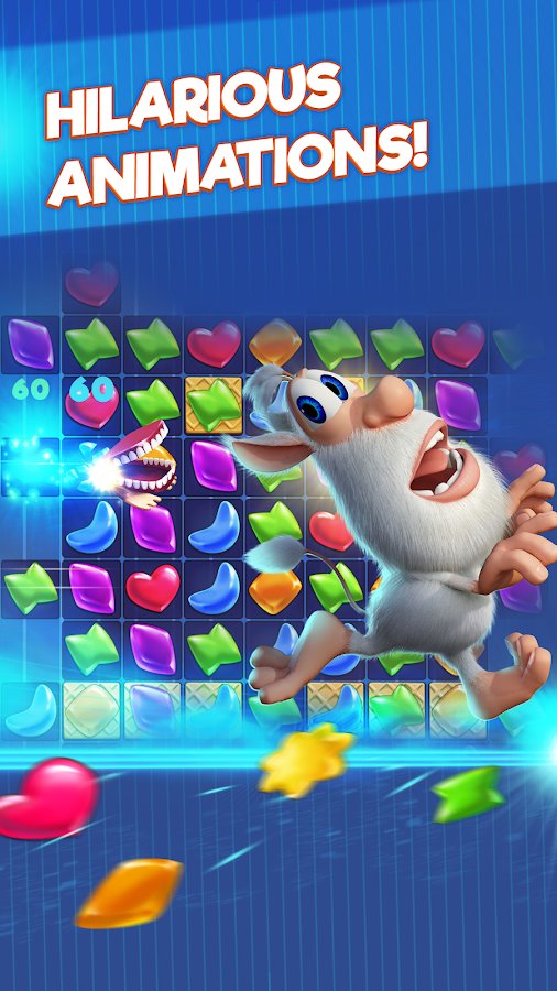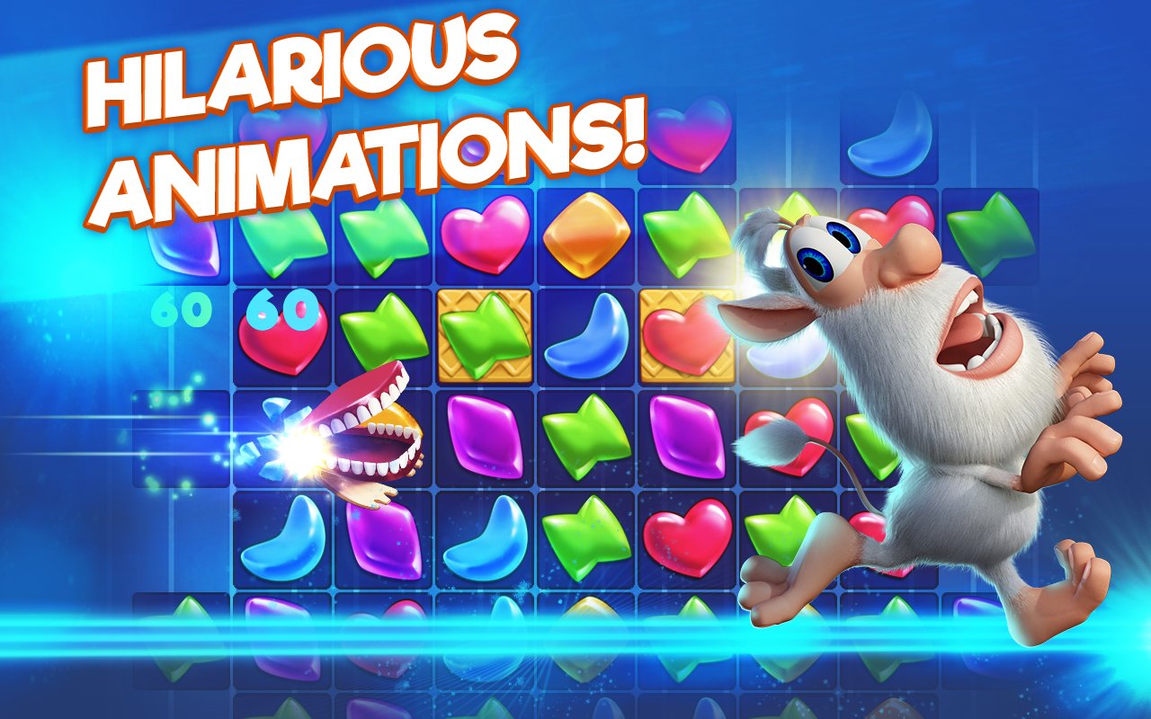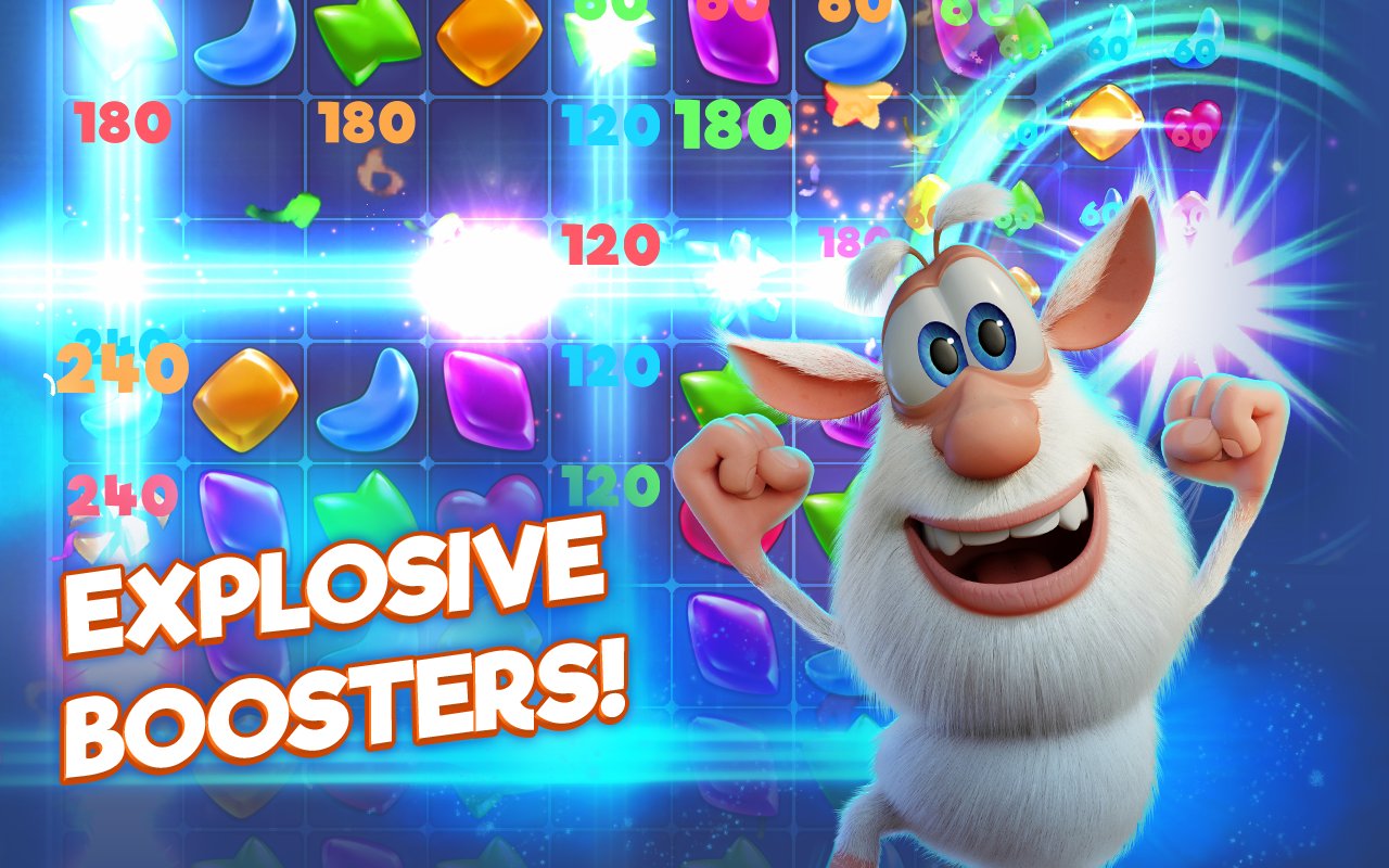Booba Candy Adventure - arcade game three in a row, the protagonist of which became a popular character Bubba, known for his restless nature and sense of humor. Here in the company of this hero you have to go through more than 120 levels combining the same elements in a row of three or more, and performing various tasks. In addition to a nice hand-drawn graphics you will find plenty of adventure and a story which will tell you everything.