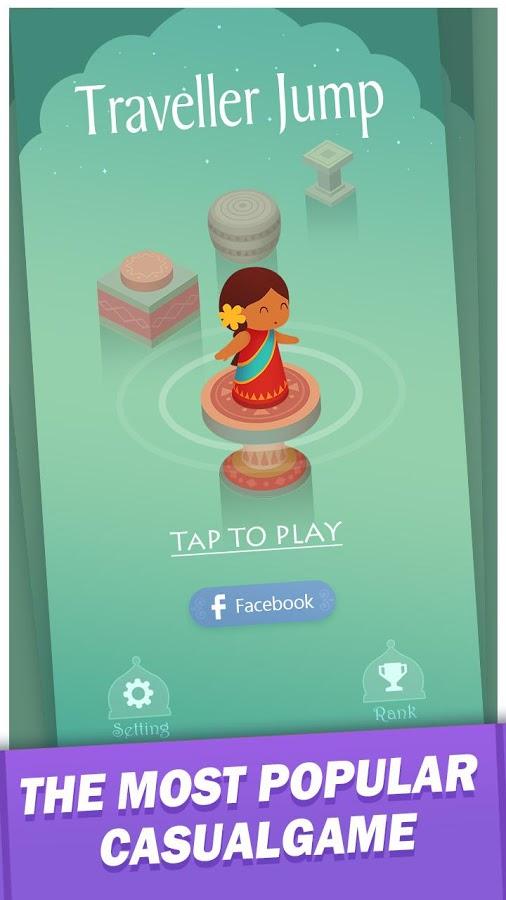 Traveller Jump – addictive casual game for Android where you will help the girl to jump on the platforms. Your task in this game is to control the girl and touch in the right point of the screen of your phone or tablet and force her to jump. Go the greatest possible distance in the game and get record results rising higher in the leaderboard. Earn coins and unlock new characters to diversify the gameplay.