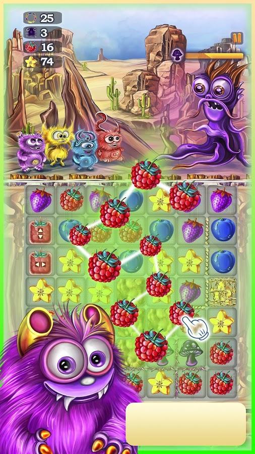 Fluffland Adventum - Match 3 – exciting game of the genre three in a row on Android where you will help fuzzy Fluffy free his friends from captivity. Insidious Zluki captured all your friends and put them in cages now your task will be to go on a journey through the beautiful and scenic places and to complete all the missions. Match three or more objects of the same color and get closer to the release of friends. Play this game at any free time and overcome all obstacles on the way. Free 15 the little heroes and get prizes for each level.
