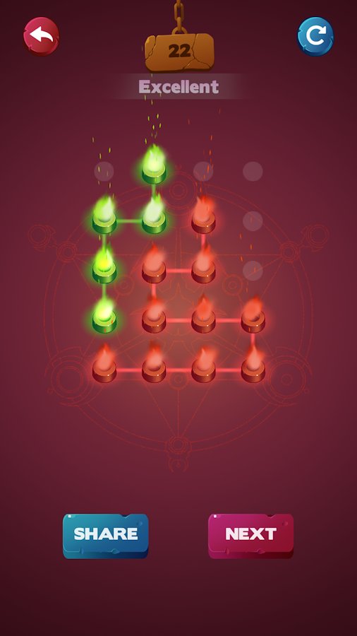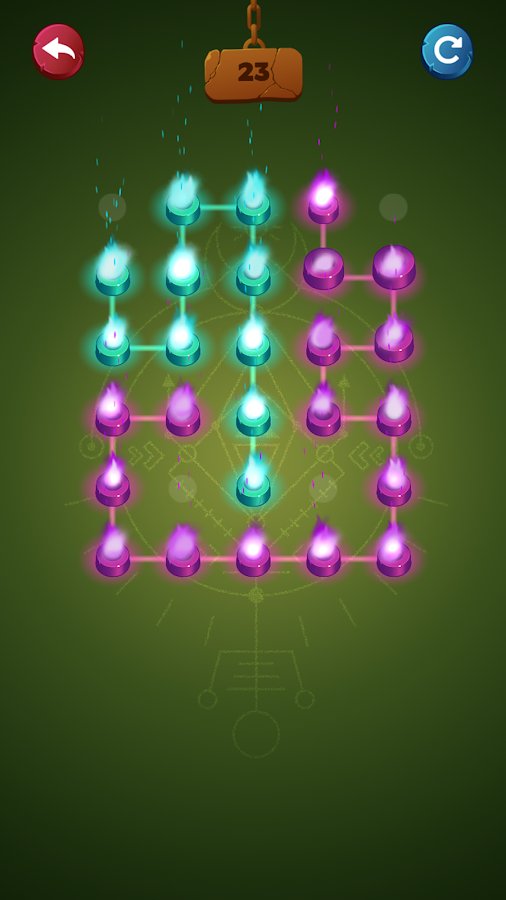 Connect poly - new IQ test – connect the dots on the screen one line and pass the challenging levels of the game. In this game your main task is to light all the magical lights and pass the level. Rely on your wits and logic, and avoid crossing lines. Explore mystical dungeons and illuminate your path with lights looking for treasure. Enlist the help of the tips in difficult situations and when you re stuck. The difficulty with each passing level will increase.