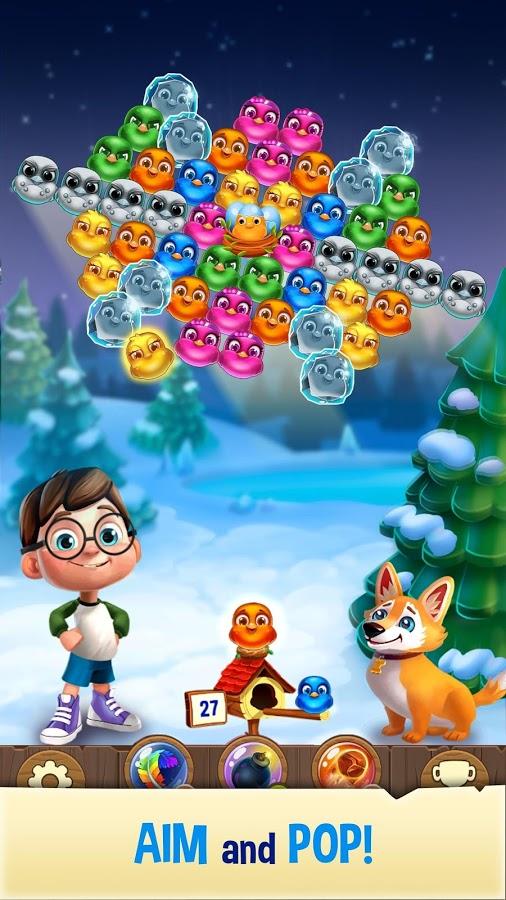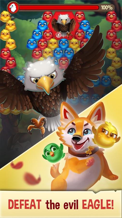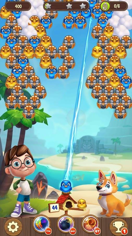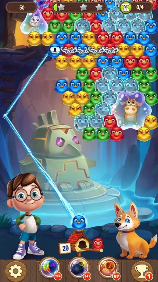 Bubble Birds V - Color Birds Shooter – bubble shooter game for Android where you will help Tom to release the birds from captivity. In this game you will plunge into the world of angry birds where the leader has gathered all the birds and put them in bubbles-cells. Your task will be to help the cute birds escape from captivity, and for that you need to match rows of three or more balls of the same color in a row. Shoot the balls in a cluster of identical balls and make them disappear. Go through more than 200 levels and achieve excellent results. Set your highscore in the game and compete with your friends. Use boosts and gain the difficult situations and go through the levels.