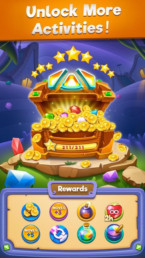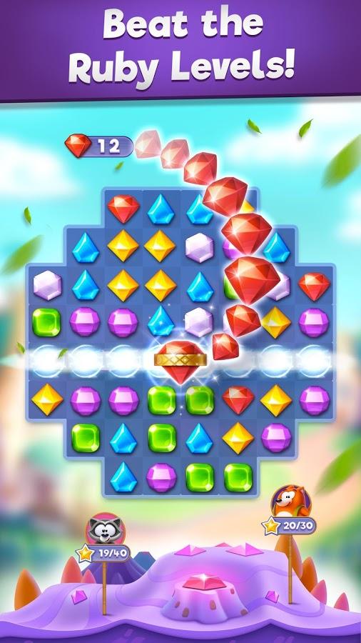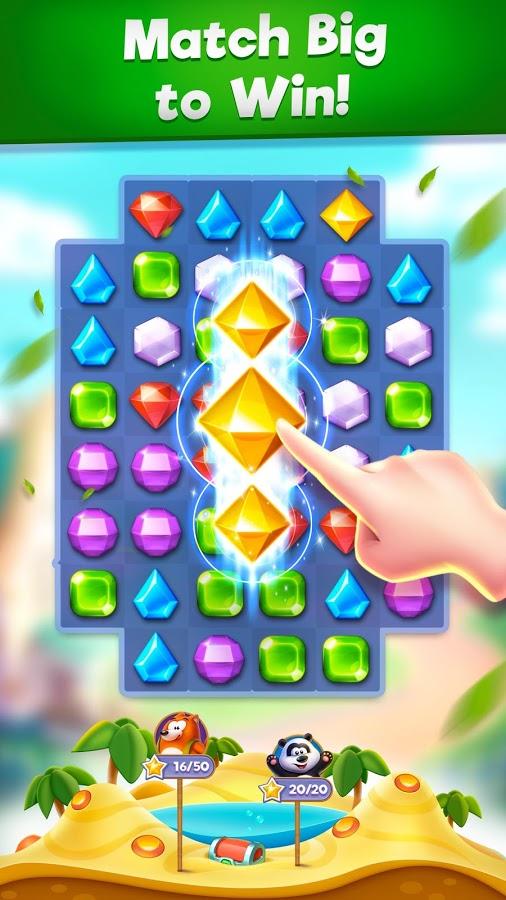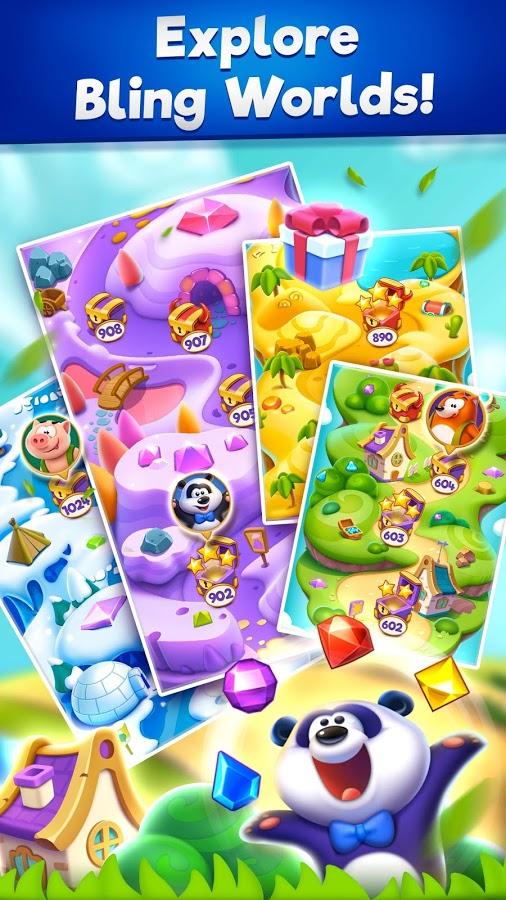 Bling Crush – match sparkling gems and make them disappear. In this game, you will travel through Dreamland and blast gems by getting prizes and gifts. Swap gems and create rows of same colored gems, and enemies. On your way you will meet many cute characters and help them through all difficulties and avoid traps. Spin the wheel of fortune earn extra prizes. Use bonuses and power-UPS in difficult situations and rise higher on the leaderboard.