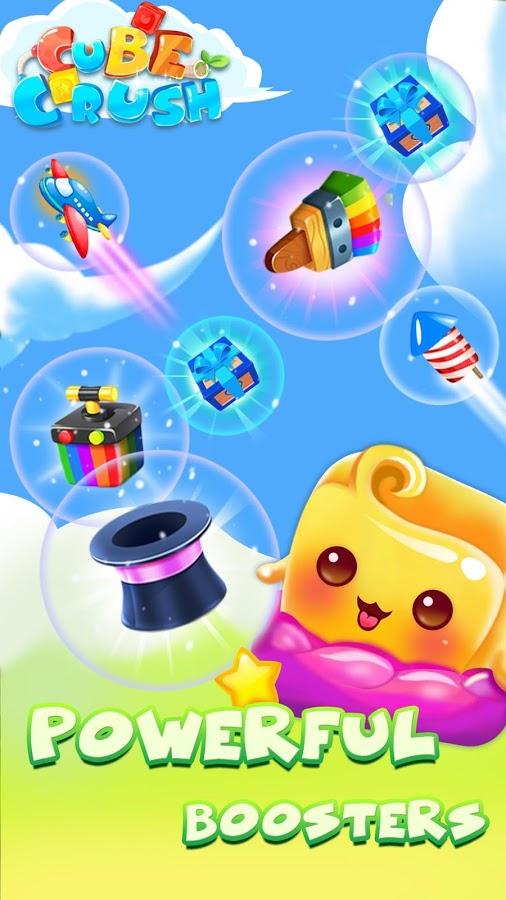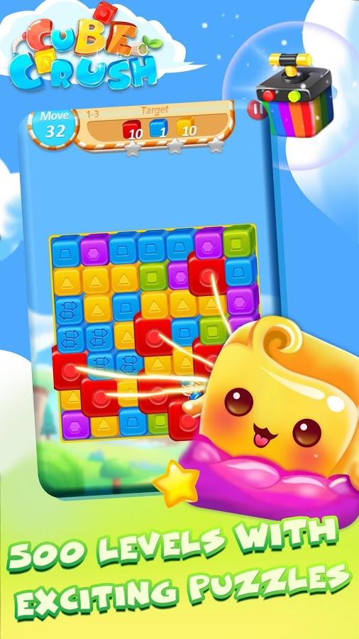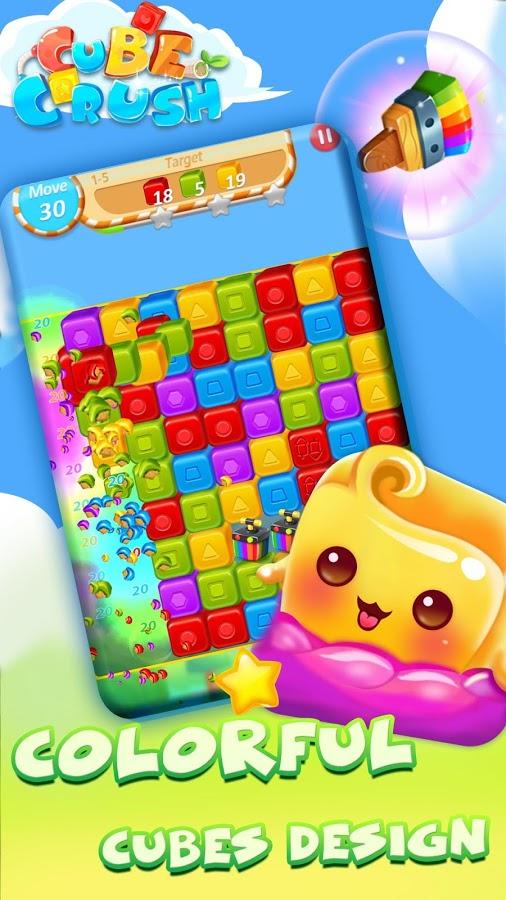 Cube Crush: Collapse & Blast Game – an exciting game of the genre three in a row on Android where you will travel through colourful levels. In this game your main task is to make rows of three or more cubes of the same color and blow them up. Seek out groups of cubes of the same color and try to explode them getting the reward points and bonuses. Located on the playing field, bombs, rockets and other bonuses will also allow you to advance quicker through levels of the game. Earn three stars on each level and unlock new. Climb higher in the leaderboard and set their records.