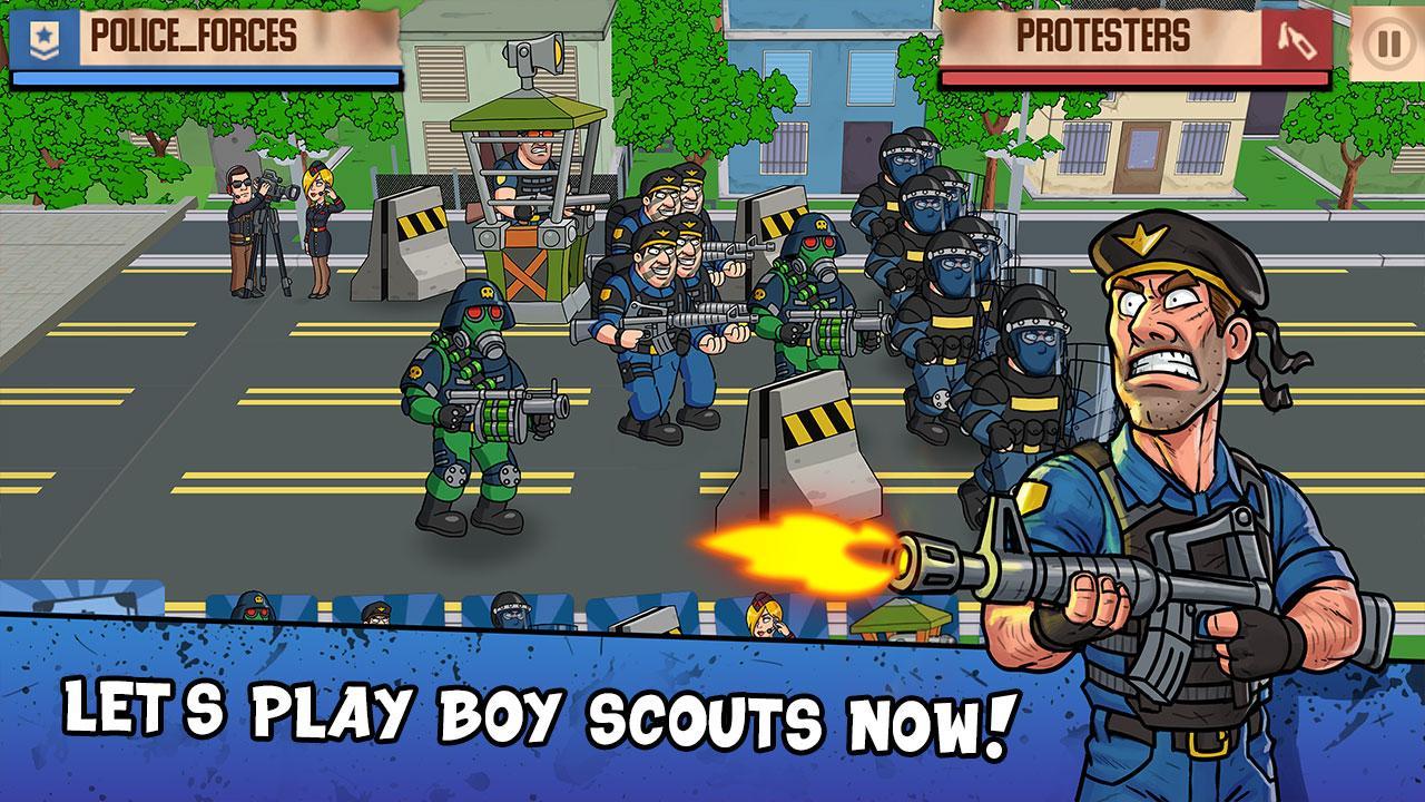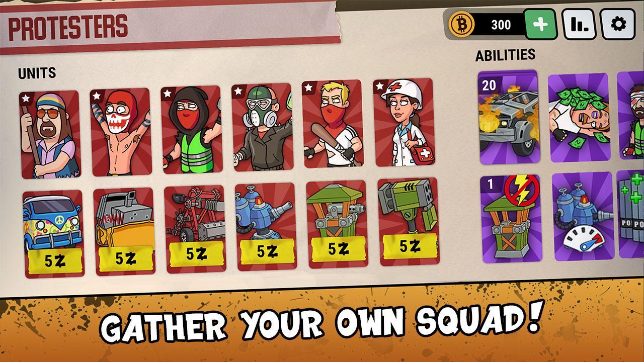 Democracy on Fire – addictive game for Android where you will play the role of police or detachment of the protesters. Take control of one of the parties to the conflict and lead it to victory. Try to overthrow the regime and establish a people s democracy or serving the role of the police and by all means defend dictators. Build defensive barricades and fortifications, and protect your squad. Develop your tactics of warfare and send in their troops and equipment. Perform numerous missions in different cities of the country and get rewarded with new units.