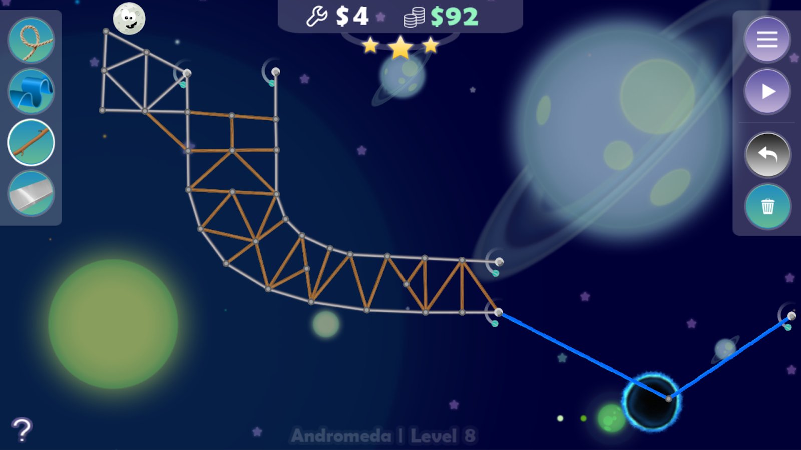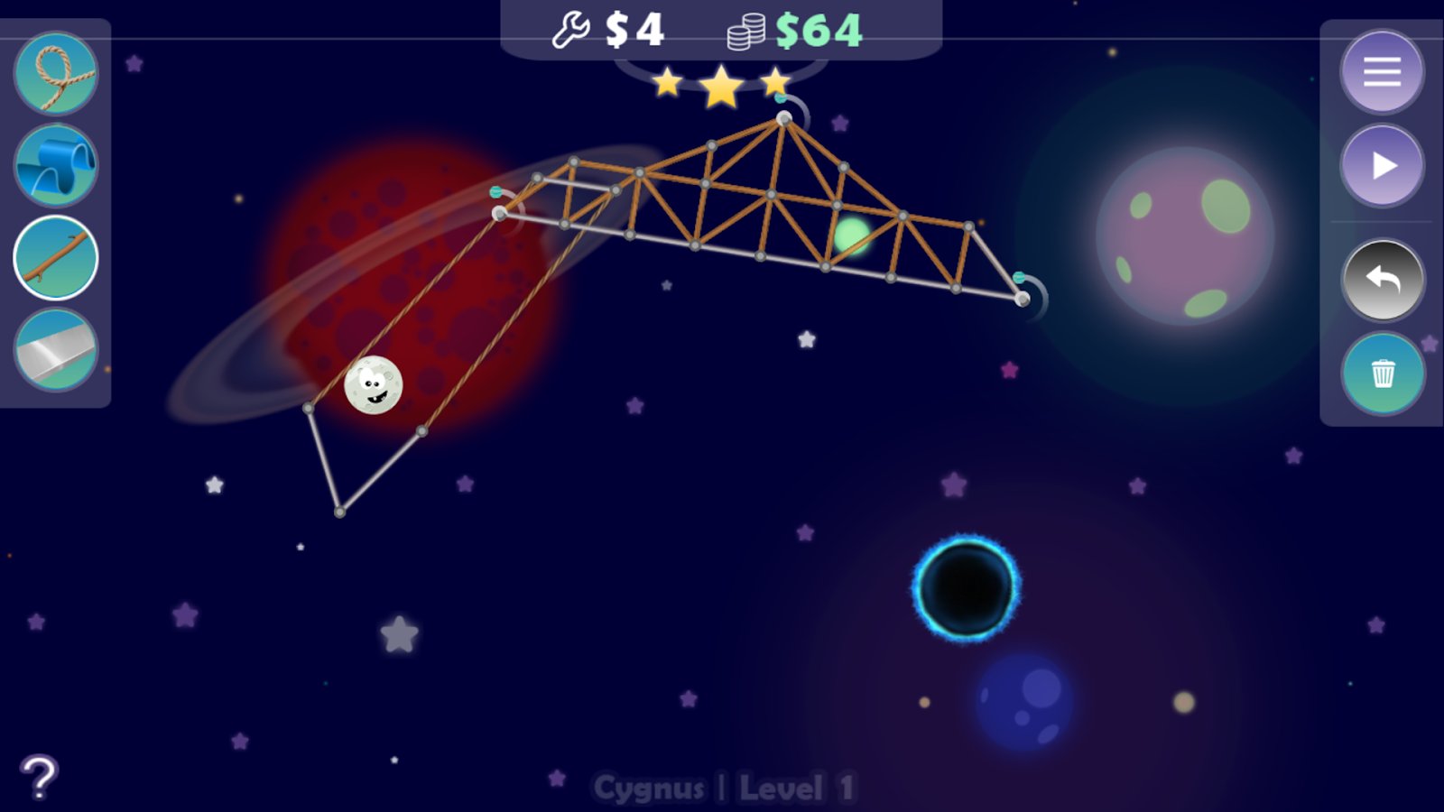 MoonyMoo is a physical puzzle game with elements of construction which revolves around funny character nicknamed Mu lost in the vastness of space and now you have to try to help our hero find a way home. On each level you have to build a complicated way of scrap materials, doing it in such a way that Mu could reach the exit, it is necessary to consider the laws of physics.