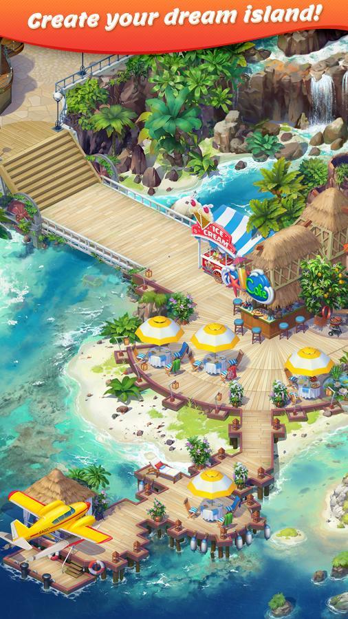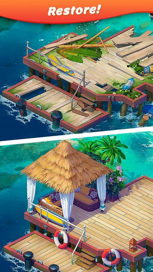 Tropical Forest: Match 3 Story – addictive puzzle game genre of three in a row on Android where you will create the resort island. Create the island of your dreams building pools, furnished beach area and build hotels. Rows of luscious and varied fruits, find hidden treasures and give the island to its former glory and beauty. Explore the island and find new places and locations for their buildings. Use various bonuses and power-UPS and help benny build new facilities. Enjoy the beautiful view and perfectly divided the work and invite new tourists.