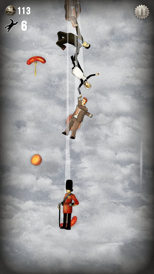 Sticky Bodies and surreal game for Android where you will go on an unforgettable journey around the UK. In this game your main task is to control the heroes and try to make you eat as fast as possible. The goal of this game to cling to the falling together of people and thus to accelerate gaining points and getting straight into a huge mouth. Fall as fast as possible and try to avoid collisions with trains, airplanes and various animals while not forgetting to collect bonuses and to climb higher in the leaderboard.
