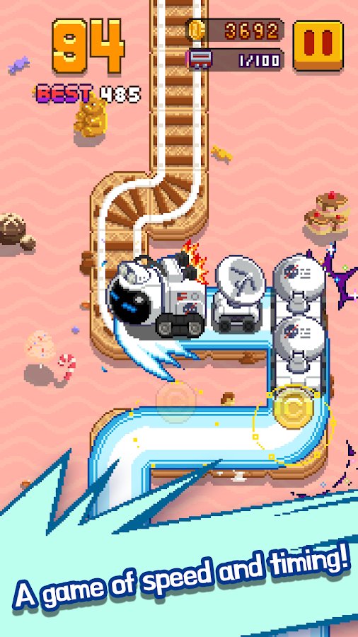 Infinite Train – a bright arcade game for Android where you will operate an amusing train. Driving along the winding railroad and make my movements as gently as possible Your main goal in the game is to get to the end of the road for a certain period of time. The track in the game will constantly change its direction so rely on your attentiveness and good reaction. Also, your paths will follow the enemies don t let them catch up and not fall into the trap. Come one after the other fascinating levels of the game and discover new funny characters.