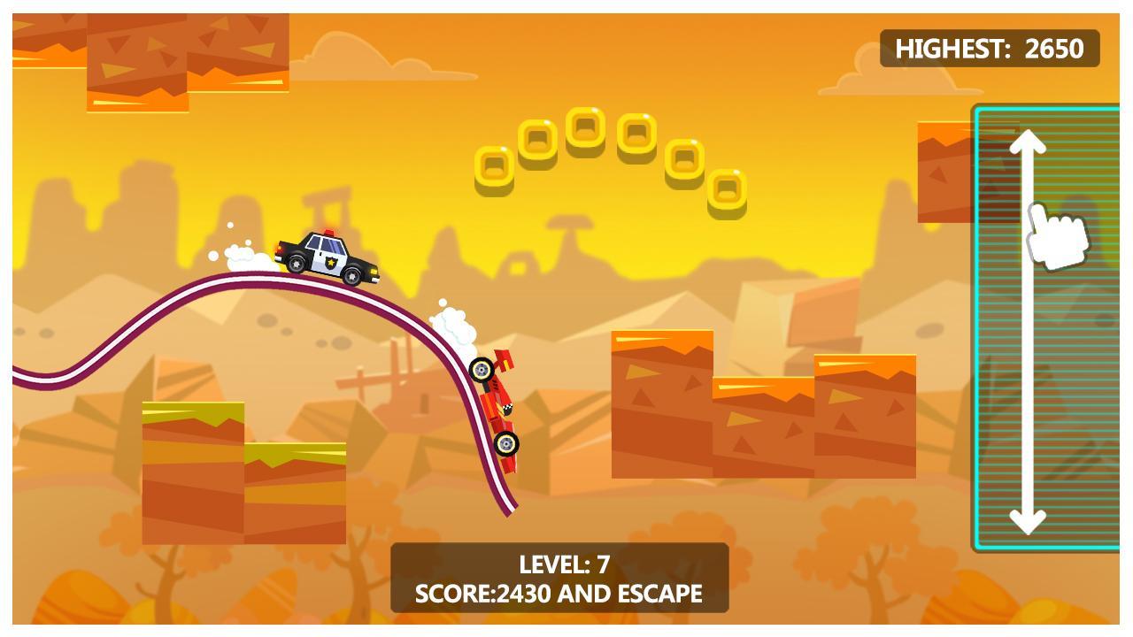 Sky Escape - Car Chase – dynamic racing arcade game for Android where you will escape the police chase. In this game you will control a car and drive on constantly changing routes, hanging in the air. Driving at high speed on a winding road and along the way, collect coins and bonuses. Start your adventure now and achieve great results in the game. Collect enough points and unlock new cars that will delight you with their uniqueness. Discover new trails and set your record.