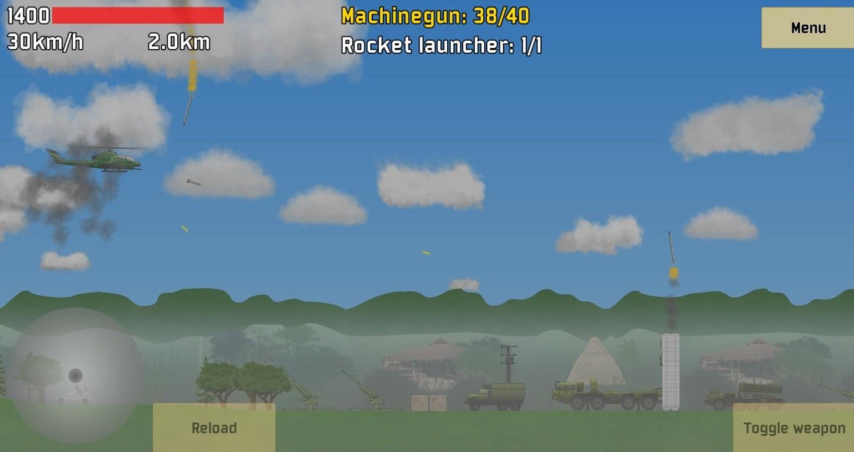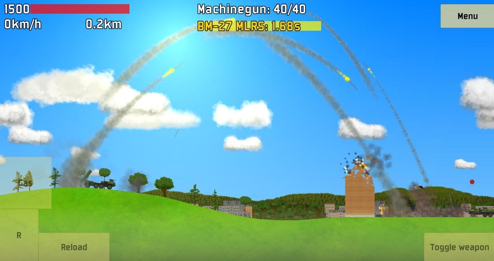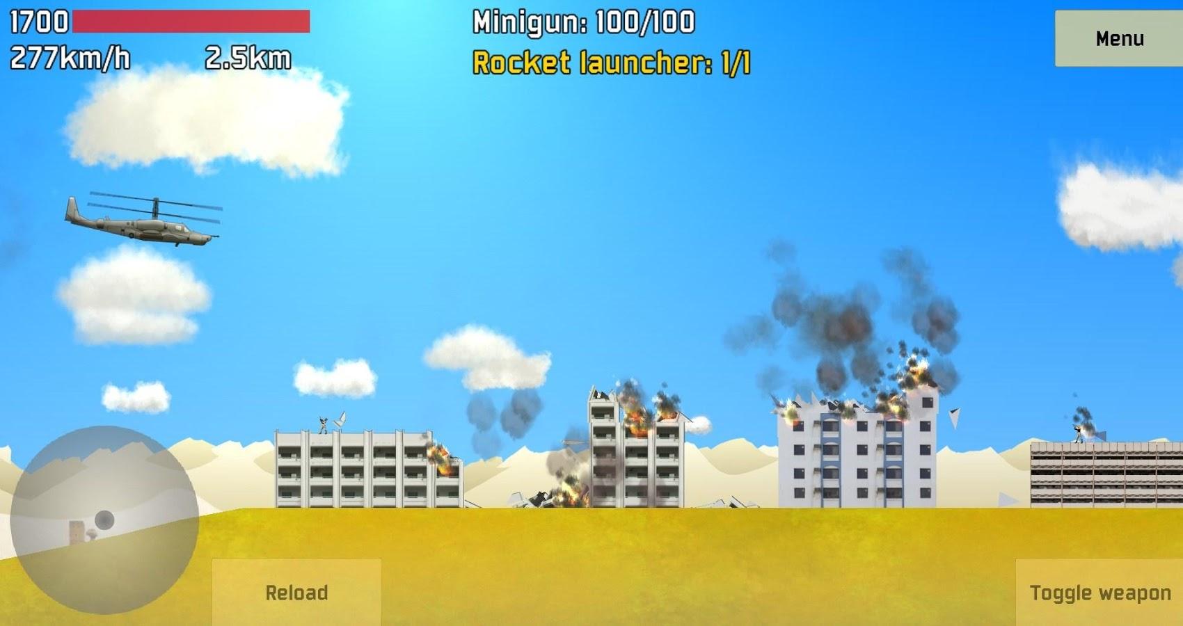Total Destruction is a fun arcade on Android where you can control tanks and other equipment. In this game you will take control tank, helicopter or airplane and spend it on various locations trying to destroy all the goals. Ahead of you will expect different targets for destruction, to show case the skill of accurate shots. Shoot buildings and watch as they are destroyed. Discover new techniques during the game and achieve excellent results improving and pumping her. Destroy buildings, terrain and enemies and use machine guns, autocannon, cannon, bombs, missiles, and nuclear weapons.