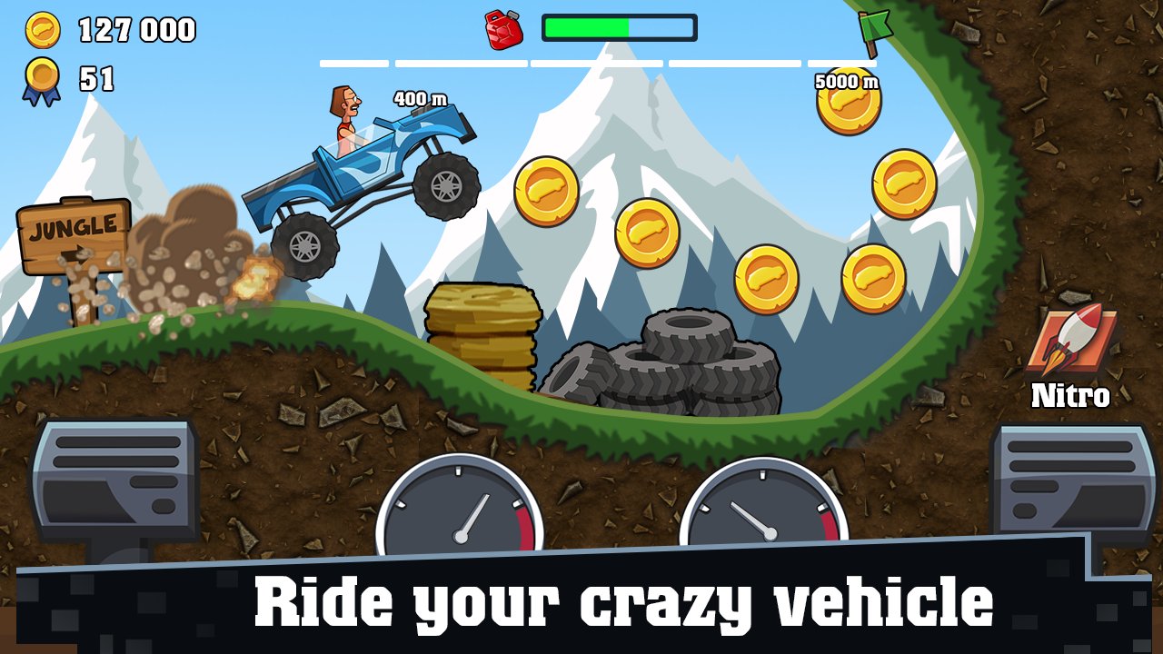 Stunt Racing - Downhill Extreme – realistic offroad jeep simulator for Android where you will drive through a hilly area. In this game your main task is to become the best racer in the world, and to achieve this title you have to go through many unique levels with different racing landscape. Drive through the countryside, desert, Arctic, highway, cave, moon, forest, beach, and mountains. Overcome all the obstacles on your way and try to reach the finish as fast as possible while collecting all the coins along the way. Discover new SUVs choosing any of the collection vehicles: jeep, motocross, monster truck, tractor, hippie van, super off road, super diesel 4x4, Quad, trophy truck, and others.