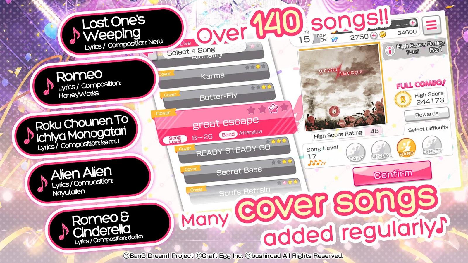 BanG Dream! Girls Band Party! – a music game for Android where you will train your musical ear and excellent response. Take control of your music group which will consist of several musicians and prepare her for the upcoming concert. The game features more than 140 songs such as original songs, covers from the well-known J-pop and songs from anime. Throw the best concerts with five groups and collect crowds of fans. Play this game with friends or players from around the world and climb higher in the leaderboard. Train artists and improve your group. Complete different missions of the game and move to the city with the main characters.