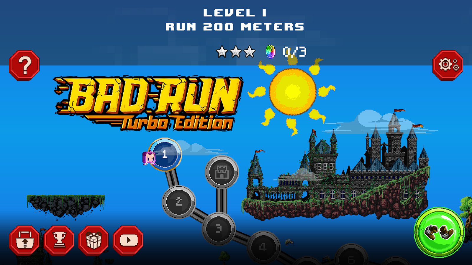 Bad Run - Turbo Edition – adventure platformer for Android where you will manage a brave hero Square. In this game you will embark on an epic adventure where your task will be to run, jump, swim, fly and make his way through the many obstacles and traps. The most important thing that you need to do is not to give the evil plans of Evil Pen will come true. You will find numerous and varied missions of the game in a procedurally generated world, endless and different game modes, and additional bonuses and coins. Use coins to upgrade your character or purchase new outfits and costumes.