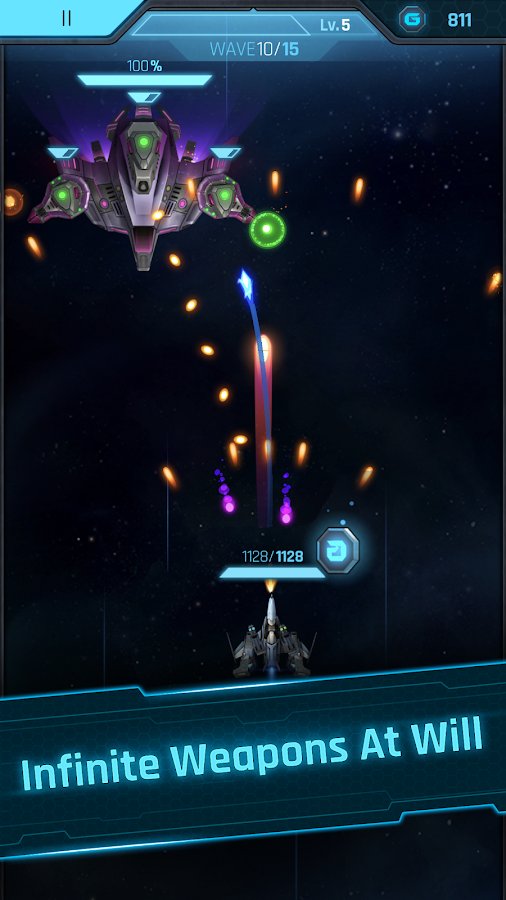 Galaxy Raid – scrolling shooter for Android where you will save the Galaxy from destruction. One day at a galactic civilization was attacked by an unknown dark force. Many planets have fallen, and the galactic Congress was destroyed. To fight this dark force was formed a resistance army called galactic RAID for the rescue operation. Take control of your spaceship and take on the challenge of defeating many of the enemy ships. Your space ship can have up to seven weapons and five defense mechanisms. After each battle, your ship will be updated, receiving new skills, which will make it more powerful and strong. Collect gear and increase the combat power of your ship.