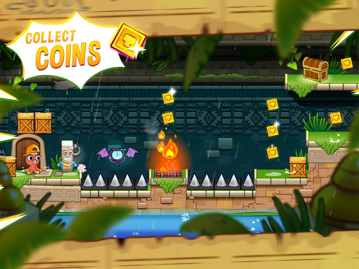 OctoCurse - players will be on the island with the pirates, where many treasures and dangerous traps. You will see octopus and an evil God who turned all and forced to work. In the game there are different obstacles that you need to avoid, otherwise you will have problems. The game has many memorable levels with excellent rendering of all the elements and levels of the character. The animation is also excellent, in the end, get a quality platformer that is definitely worth a try for all fans of this genre.