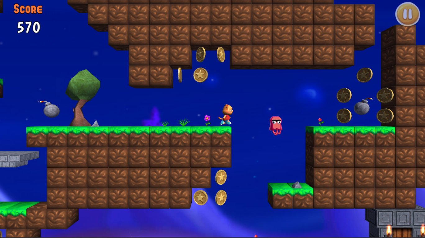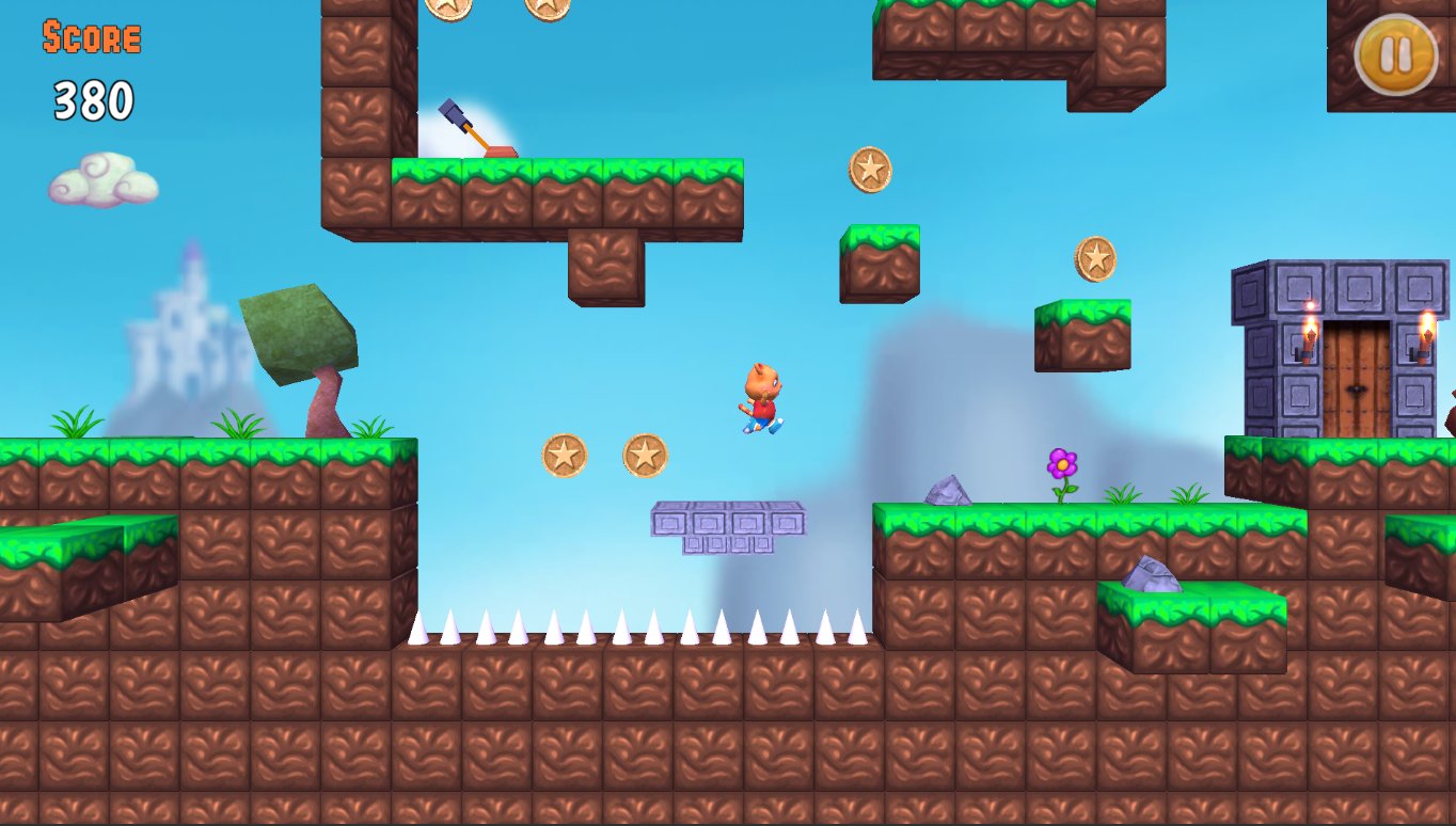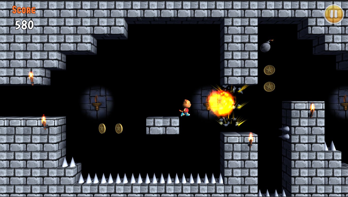 Bomber Cat Run - Simple, clear, and interesting game play with one hand, press the only two buttons jump and stop . Help cat Jazz which runs automatically, help him jump to overcome small obstacles, collect coins and get out of the way of enemies, achieve the set goals. Help the Jazz to rescue his master from the murderous clutches of the Sorcerer. Time will be your best assistant, or, on the contrary, will hinder the achievement of certain heights.