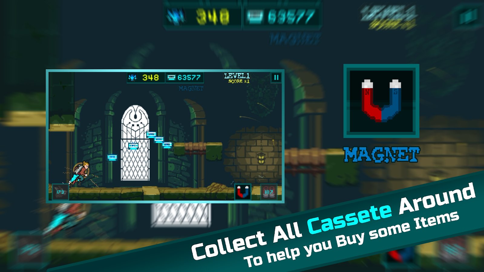 Tetroparja Eternity - pixel two-dimensional runner in which you can shoot demons, turn into a werewolf and magnet to various objects. One day the commander of the army suddenly attacked the Palace. Our hero miraculously survived due to the fact that time has left the Palace. Centuries later, in the distant future, along with a priceless necklace you returned to the castle with the help of new technology in order to take revenge and to find answers to the questions that you so long tormented. Enjoy the game!