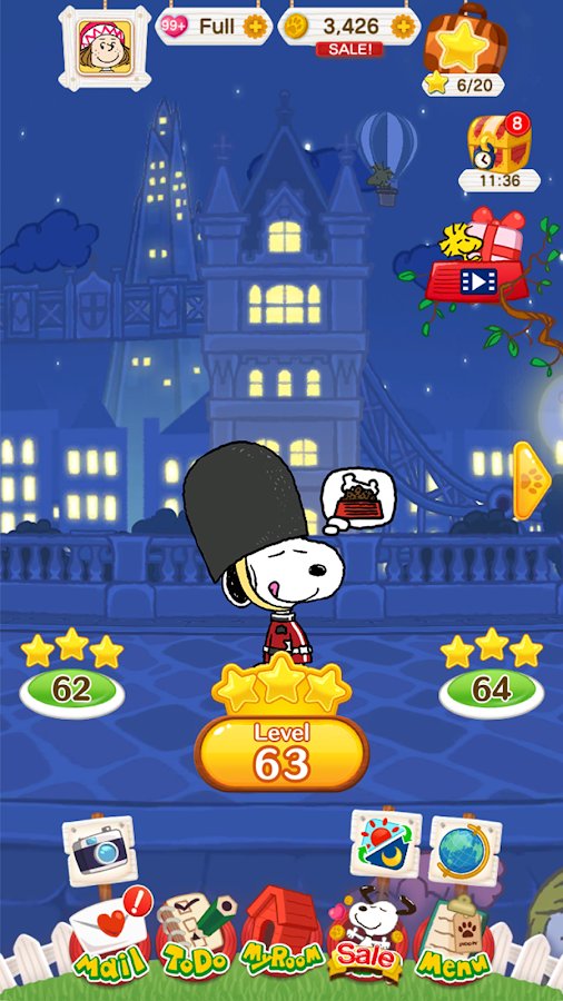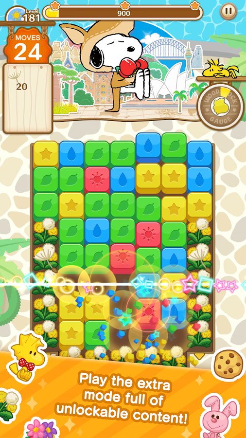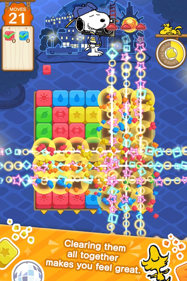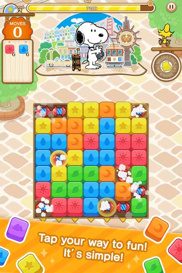SNOOPY Puzzle Journey - you have the opportunity to travel around the world together with Snoopy. Just press the colored squares to make them disappear, use a combo of action and go through the levels even faster. After completing each puzzle you will visit new cities and countries, don t forget to make a photo for memory. Create your own dressing room and Snoopy dress up in national costumes of countries visited. In the game with almost unlimited levels and extra modes, so just solve puzzles and enjoy fun travel!