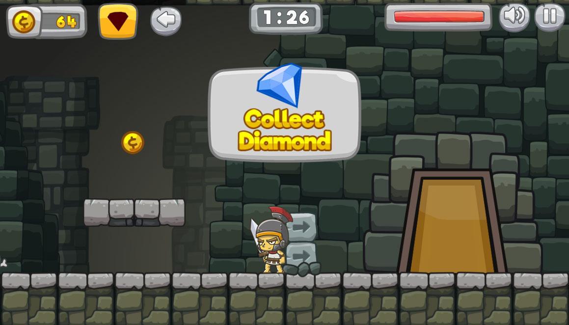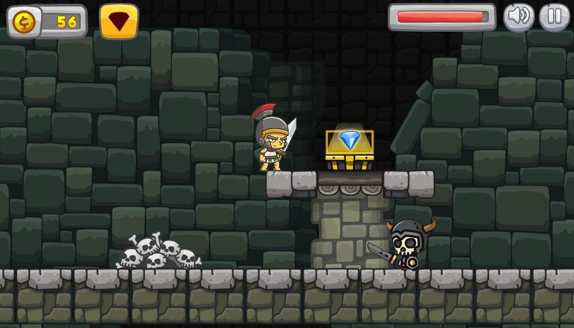 Knights Diamond Mods - the game is a platformer where you can control different characters and walk around the dungeons, which are teeming with skeletons. Run , collect coins and treasures, don t forget to kill the skeletons in the game 5 kinds and Dodge the various obstacles. As you progress through the game you ll unlock new characters, so that to play fast you just will not get bored, and a large number of levels only fuels interest in the game. Find all the diamonds and open all doors.