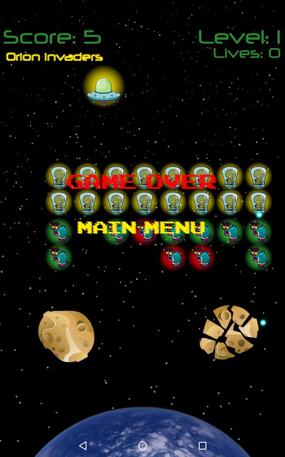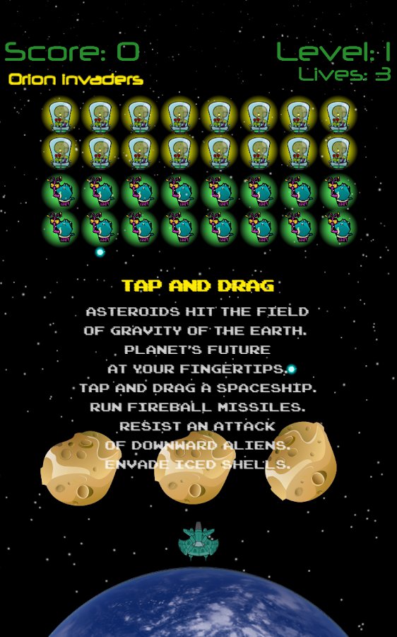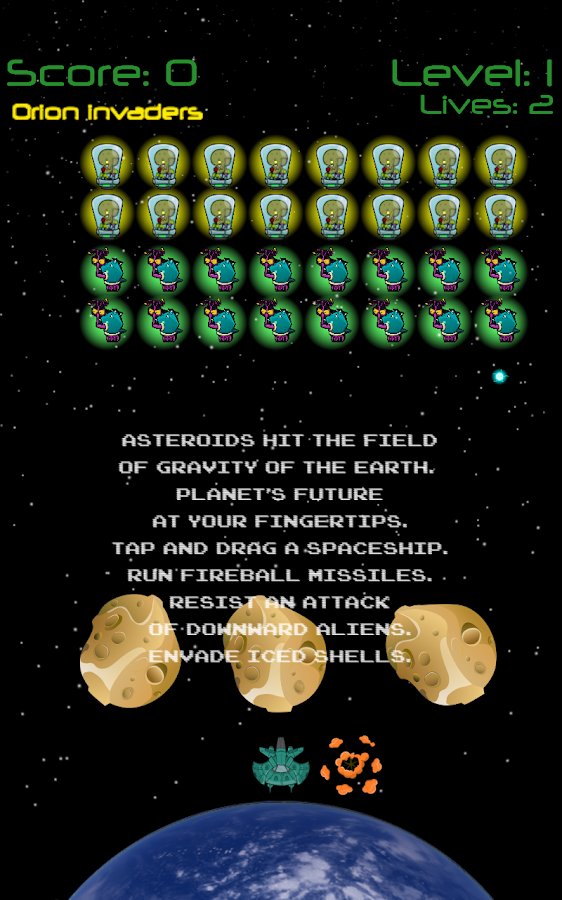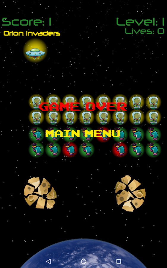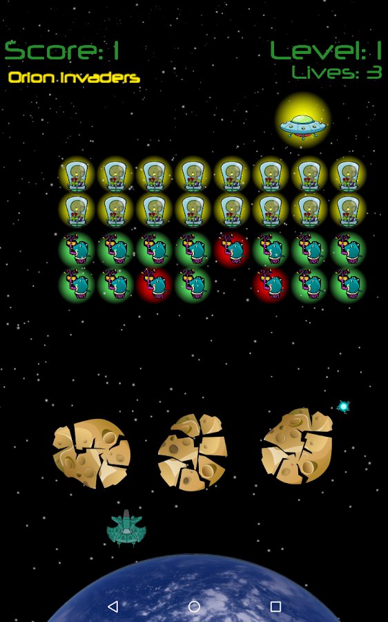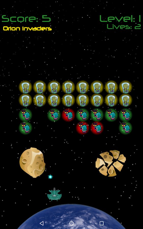 Orion invaders - Space Shooter - Future of the entire planet rests on your shoulders, only you can determine whether it will flourish or it will capture the hostile-minded Oriental. Make the tactics of the invaders, almost always as a tactic for your way they choose the path of the snake or round, each new level they will become faster and stronger. The aliens can take any form ranging from light and ending with the armor, but don t worry, in the sky, they will be poorly illuminated. After the complete destruction of one group of aliens on their dream will be another fight to the last, defend your galaxy in any way!
