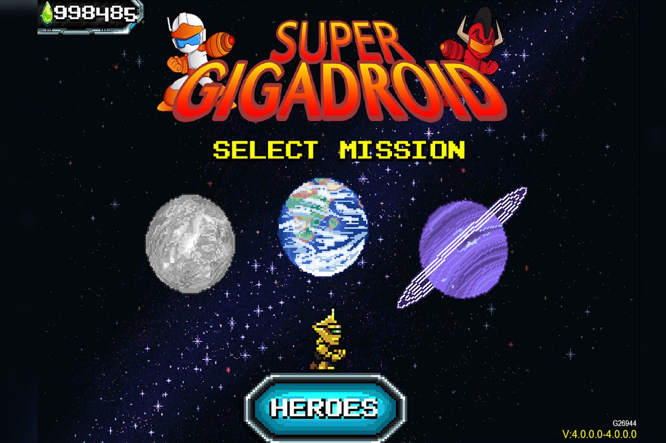 Super Gigadroid - saites battles in space to increase their level of hydroida. Each level will increase as you progress through stages, each following will be much more difficult previous. You can play with any convenient device, as the game supports gamepad with Bluetooth, even on Android TV. 3 engrossing modes, easy, medium and hard. Excerpts to be 20 collectible characters. Connect your friends to the game and compete with them, climb the ranking up and just having fun.