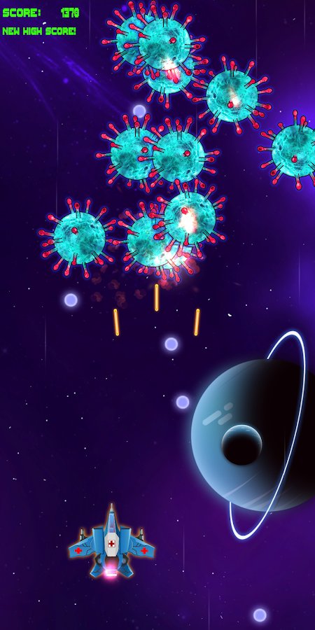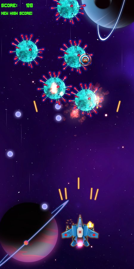 Virus Killer 2020 – scrolling shooter for Android where you will save the universe from the threat of the virus. In this game you will control a spaceship that flies through the vast universe and destroys the virus that spreads very rapidly. Shoot down the virus, and Dodge projectiles that it produces, and try to survive as long as possible in the game and set your record. Let s see how long you can last in this game and beat your friends records. EN route, the spacecraft do not forget to collect bonuses and upgrade your weapons with them. Protect the planet from the spread of the virus and use one loan to the moment until the end of the outbreak.