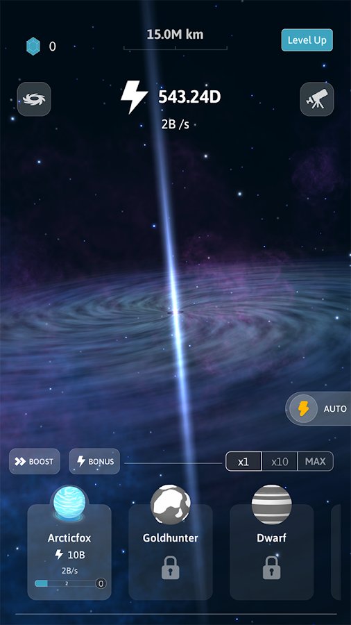 Idle Galaxy - in-game Idle Galaxy you can create your own universe and observe its development. Start with the Big Bang, create the Sun and planets: mercury, Venus, Earth, Mars, Jupiter. Fill the system with asteroids, meteors and even black holes. The game is beautiful animation and easy control, includes not only known, but more than 50 unique planets for every taste. Can you create a system of galaxies and conquer the universe!