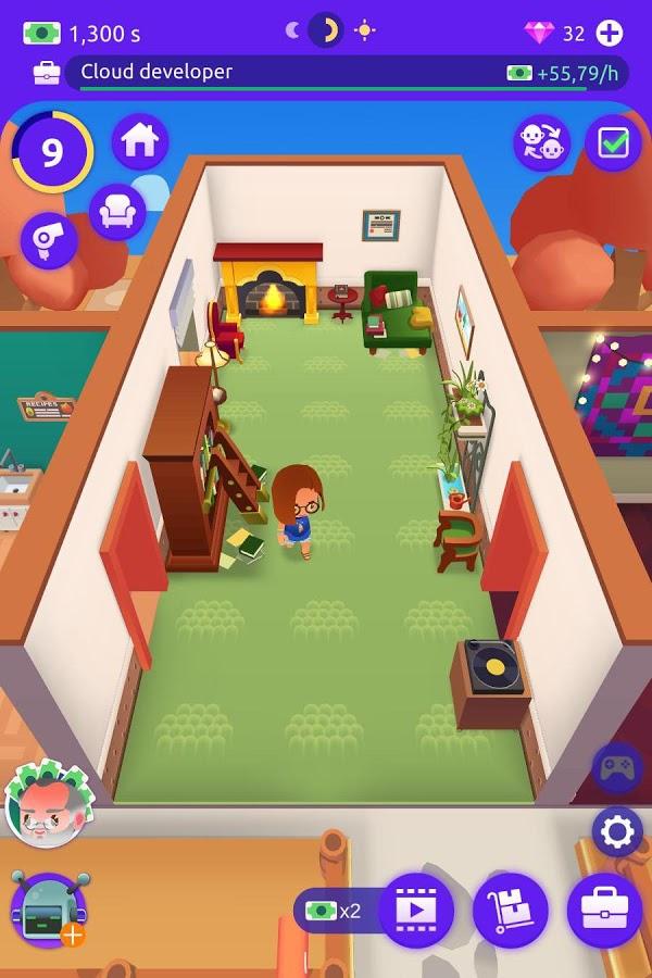 Idle Life Sim Simulator Game – is Manager life in the genre simulator. The game is very colorful and diverse. It all starts with choosing a character, customize its appearance and selection of characteristics. The story tells us that you live with grandma and it is time to move out. You choose a career, your character, and the choice is very large, find work and move to the new house. Your home is the main abode. Create your own interior, buy Antiques or modern technique, all that will be a good choice. Once you have enough money, you can move to a better home and so on. Control the fates of your characters and bring them to the goal. The development of the character affects everything that you buy in.