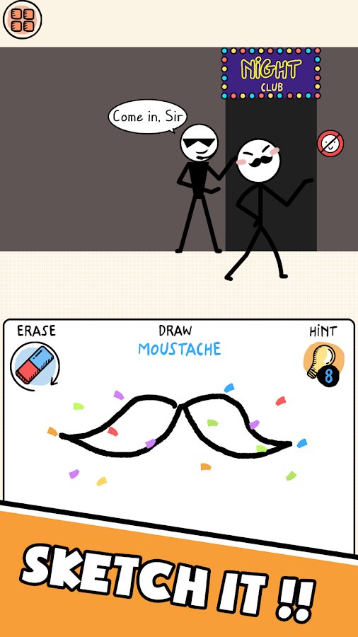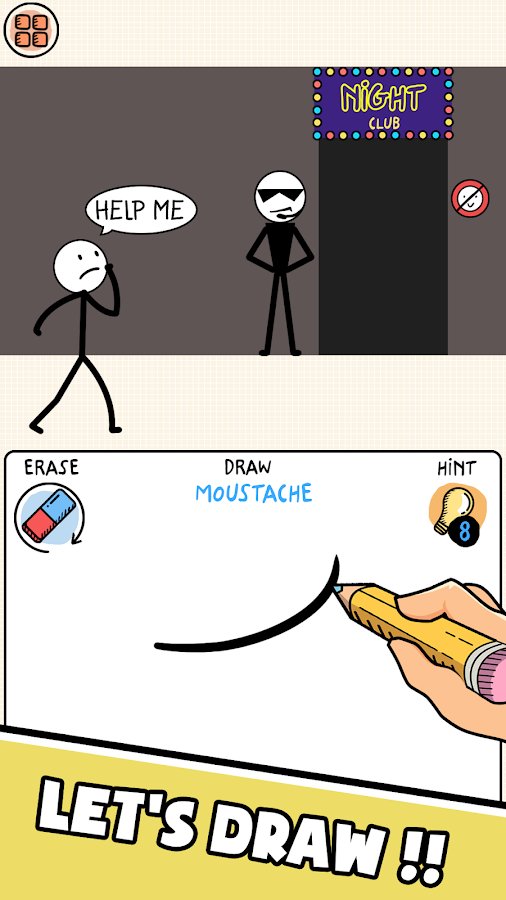 Draw puzzle: sketch it is a very fun puzzle game for your smartphones. The game will give you just a ton of puzzles. Over 300+ fascinating, sometimes strange, but interesting problems are presented in a cartoonish hand-drawn scenes. Each of the tasks necessary to find a solution and draw it on the screen. The game will test your strength, your logic, intuition and the ability to go beyond normal. With the help of this game you will improve your drawing skills. Draw as realistically as possible a solution to the current puzzle. From the first minute the gameplay is addictive, and exit will be very difficult.