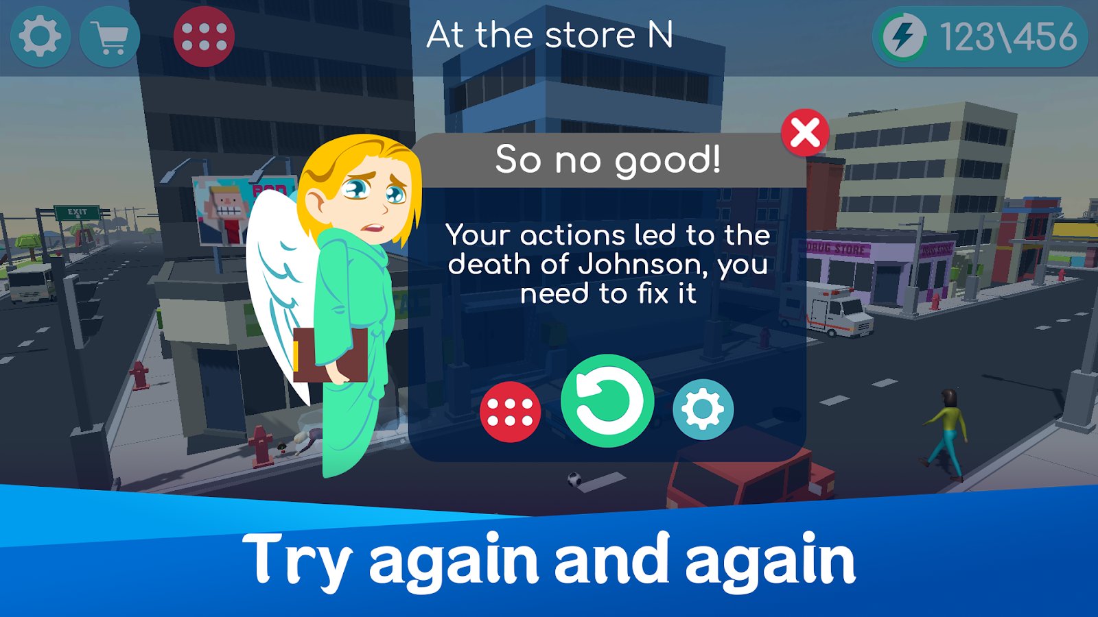 the God game: Save Civilization – a logic game for Android where you will play the role of God. The aim of the game is that you will have to experiment over time to find the cause-and-effect relationships, solve logic puzzles and solve challenging puzzles. Your task will be to observe the life of the city and to turn back time changing the course of events. Rely on your logic and solve difficult tasks by saving the lives of people. Wind off time ago, change the properties of objects and by all means prevent the death of people. In this game 100 ways to die, but God can solve all.