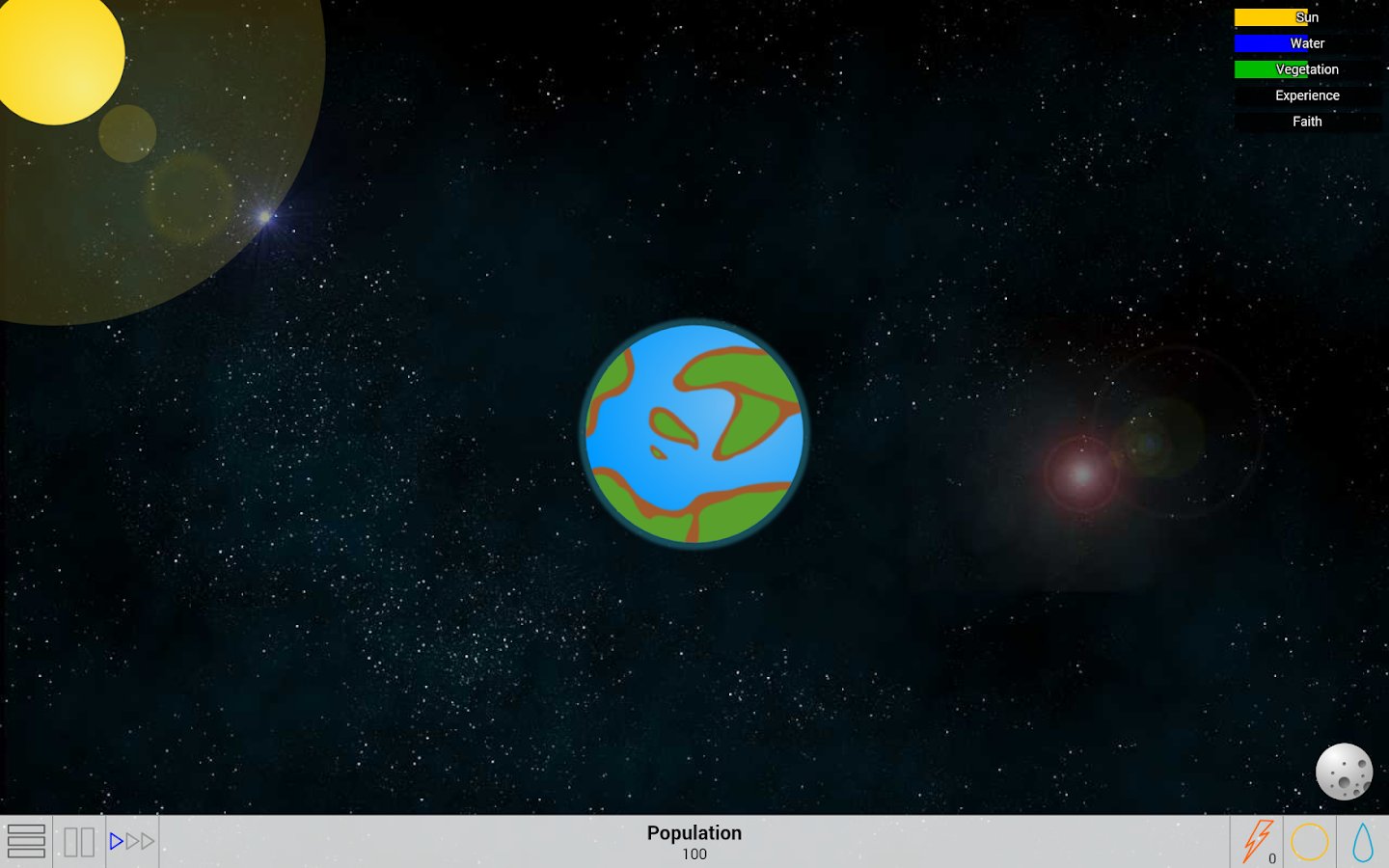 My Planet is a virtual simulation of the game where you will play the role of God. In this game you will control the planet and your main task will be to grow as much of the population. Play the role of God and improve conditions on the planet to your people lived and thrived. Control sunlight, rain and other weather conditions. Your planet will work in real time even when you are not in the game. Check the game during the day and make sure that your planet is in normal mode.