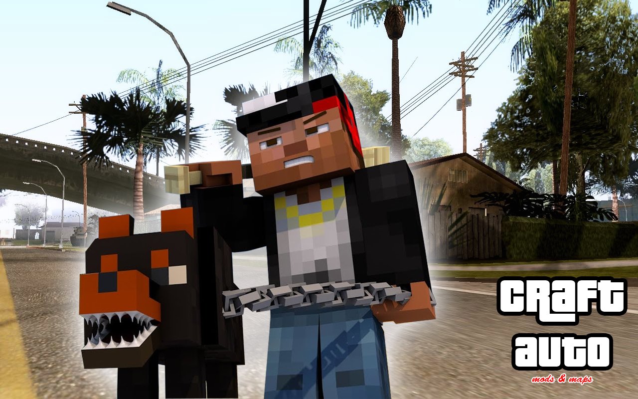 Auto Craft Mod for MCPE is an addition to Minecraft in the form of a map with a legend of the game GTA SA. Again you will find yourself on grove street – the place where it all begins.This addition will make some changes in the gameplay. You have to explore all the vastness of locations, to try to play various mini-games such as Darts, tennis, racing cars through the busy streets, helicopters and airplanes, and more. Fight for territory and to defend their interests by using different types of weapons. Interact with local inhabitants, which replaced the gang of GTA. And beware of zombie pygmies that have been replaced by cops.