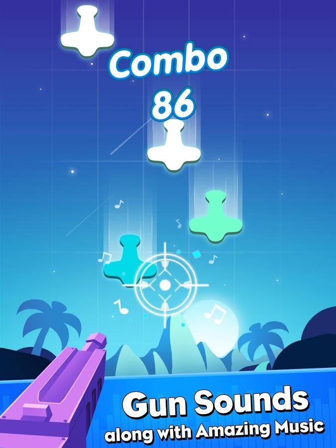 Fire Beat - EDM Music & Gun Sounds – an entertaining game combining shooting and music. This game will give you a completely new experience for fans of music games. In this game your main task will be to shoot at the tiles that will fall from the music. Try not to miss not one tile to the game is not over. Using his finger to shoot at the tiles and enjoy fascinating game process while creating various melodies. The main features of the game are a variety of songs for every taste, change the background color and easy control with one finger. Choose the appropriate weapon and achieve excellent results.