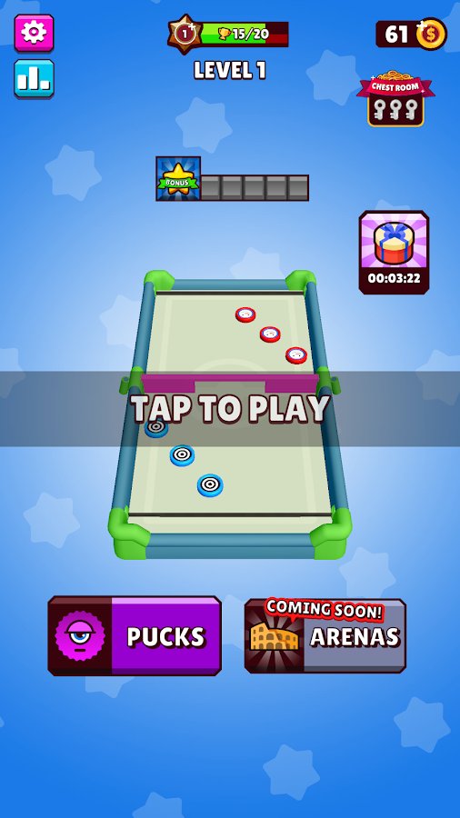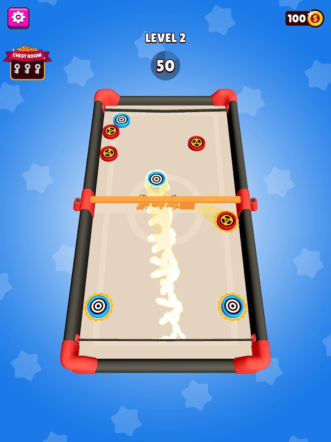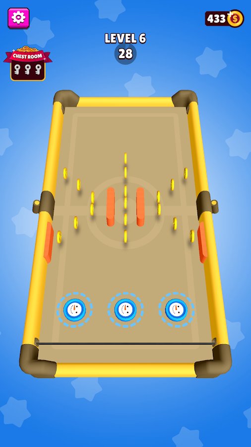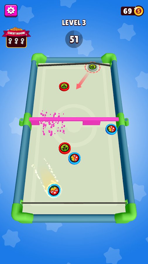Sling Puck Challenge 3D is a casual arcade game for your smartphone where you have to fight with different opponents, as well as with artificial intelligence in a rather fun and dynamic battles.This game resembles hockey, which is so loved and love will chop and toddlers, and adults, but the washers now became more and new obstacles. Your main task is to drag all their shot with a rubber sling on the side of the enemy before he will. This could interfere with their opponent s pucks smashing into yours, as well as various obstacles, which vary depending on the level. Collect a variety of trophies to climb the ranking list and try to collect all the rarest of the washer.