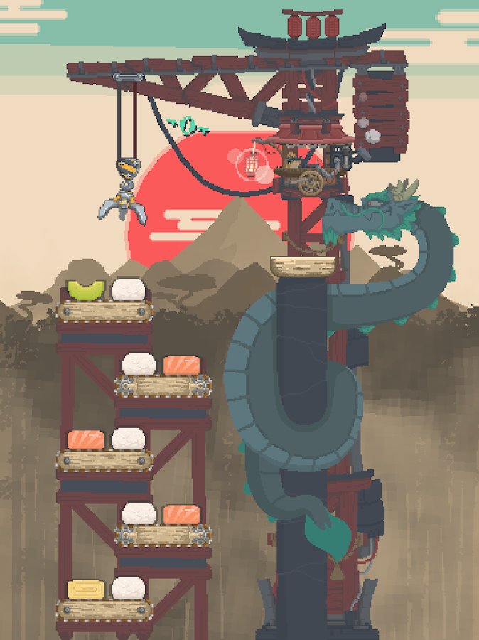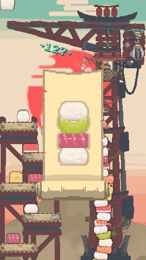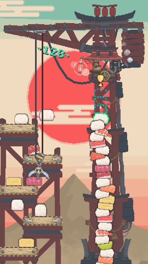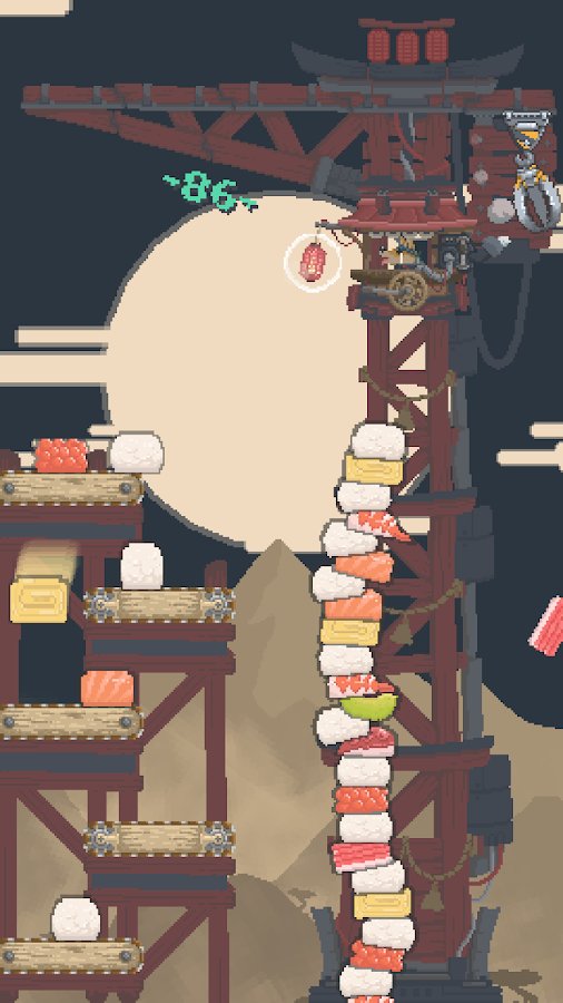 Rising Sushi – dynamic arcade game for Android where you will build a giant tower of sushi. In this game you will use the crane to hook onto the land and quickly put them in the tower in sequence. Crucial to the accuracy of the installation elements and their sequence. Build the big tower and enter the maximum number of points climbing higher in the leaderboard. Give orders and remember them to create the highest tower. You will have no chance for mistake, otherwise you ll have to build the tower again.