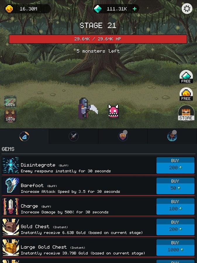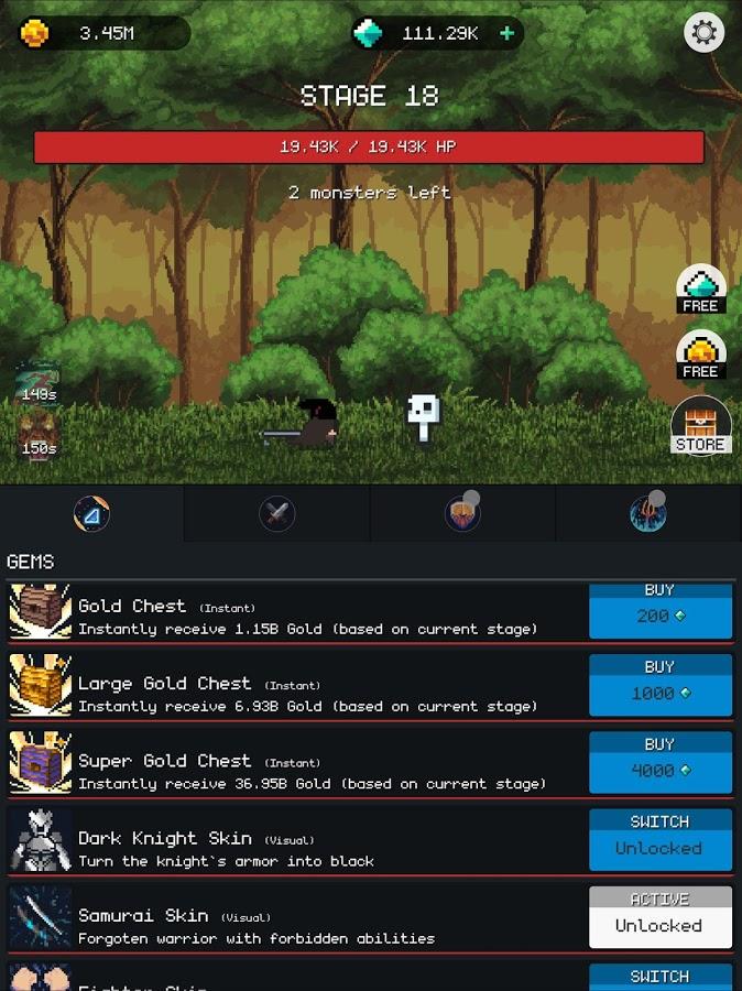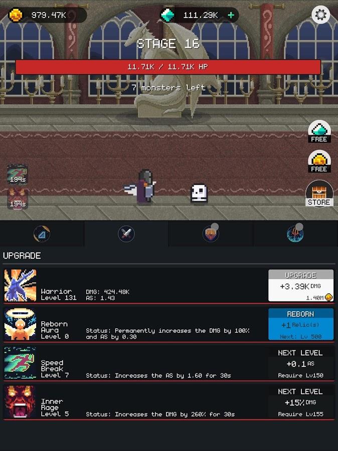 Dungeon Gates: Idle RPG game, where you can enjoy forever! Manage a brave hero and with him pass tests and dangerous mission. He does practically everything himself, you just need to direct it. Complete quests and overcome obstacles, earn points and upgrade your abilities. Defeat the small monsters and get to the dangerous bosses, be brave enough to challenge them. In this game you can play anytime, anywhere and enjoy your saved progress, set new records and collect awards.